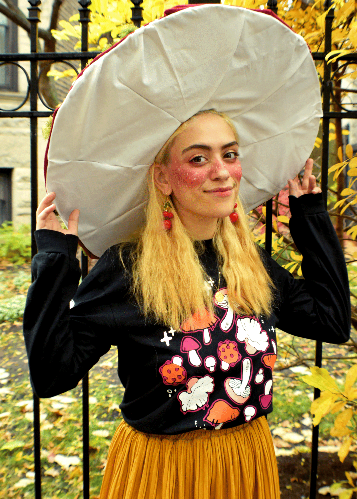 Show off how much of a fungi you are with this screen printed design on Gildan long-sleeve crew necks.