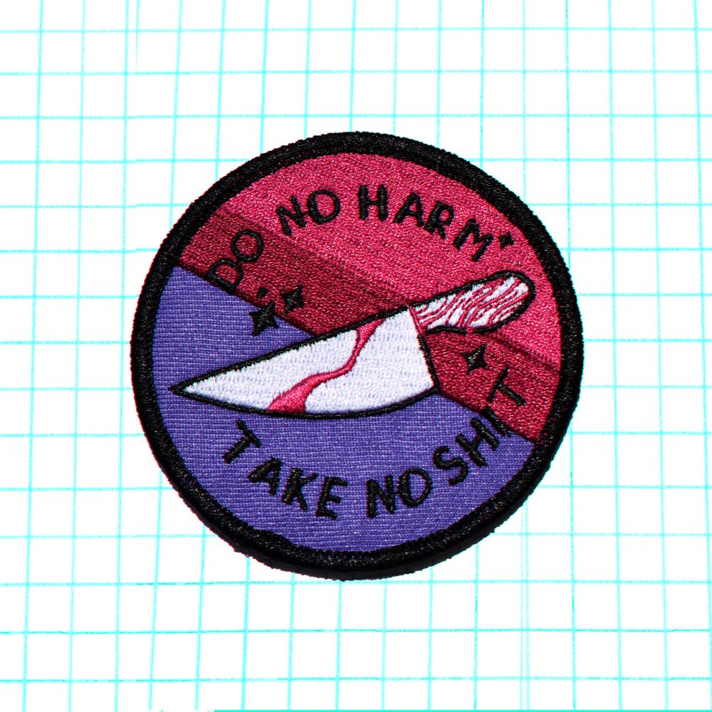 "Do No Harm/Take No Shit" Bisexual Flag Iron-On Embroidered Patch