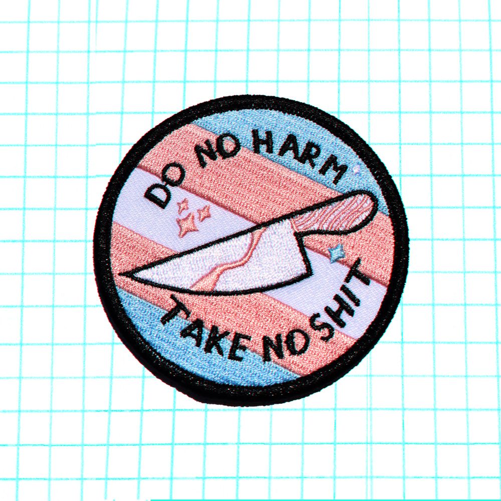 "Do No Harm/Take No Shit" Transgender Flag Iron-On Embroidered Patch