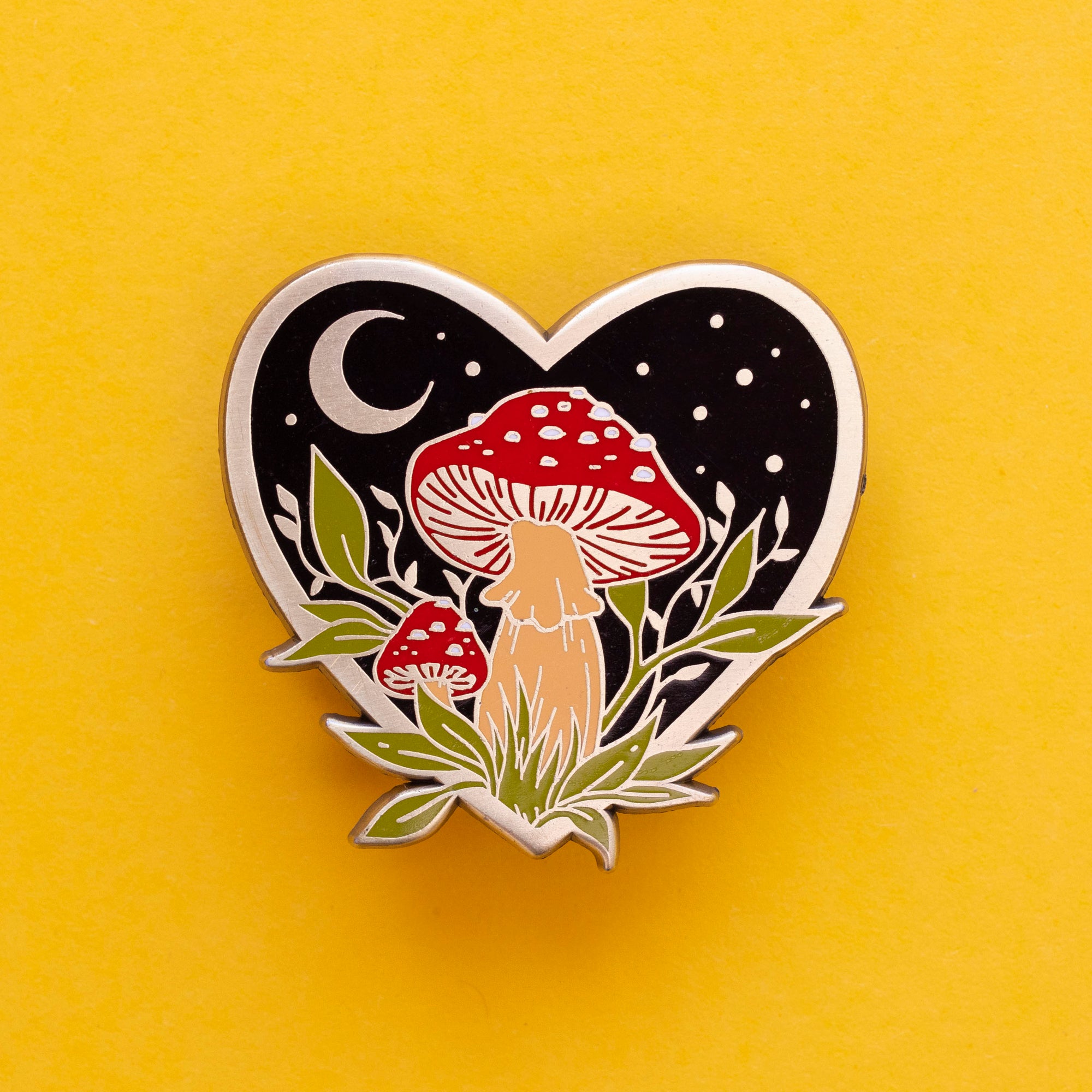 This magical, nocturnal Fly Agaric pin features subtle details in an antique gold heart shape.