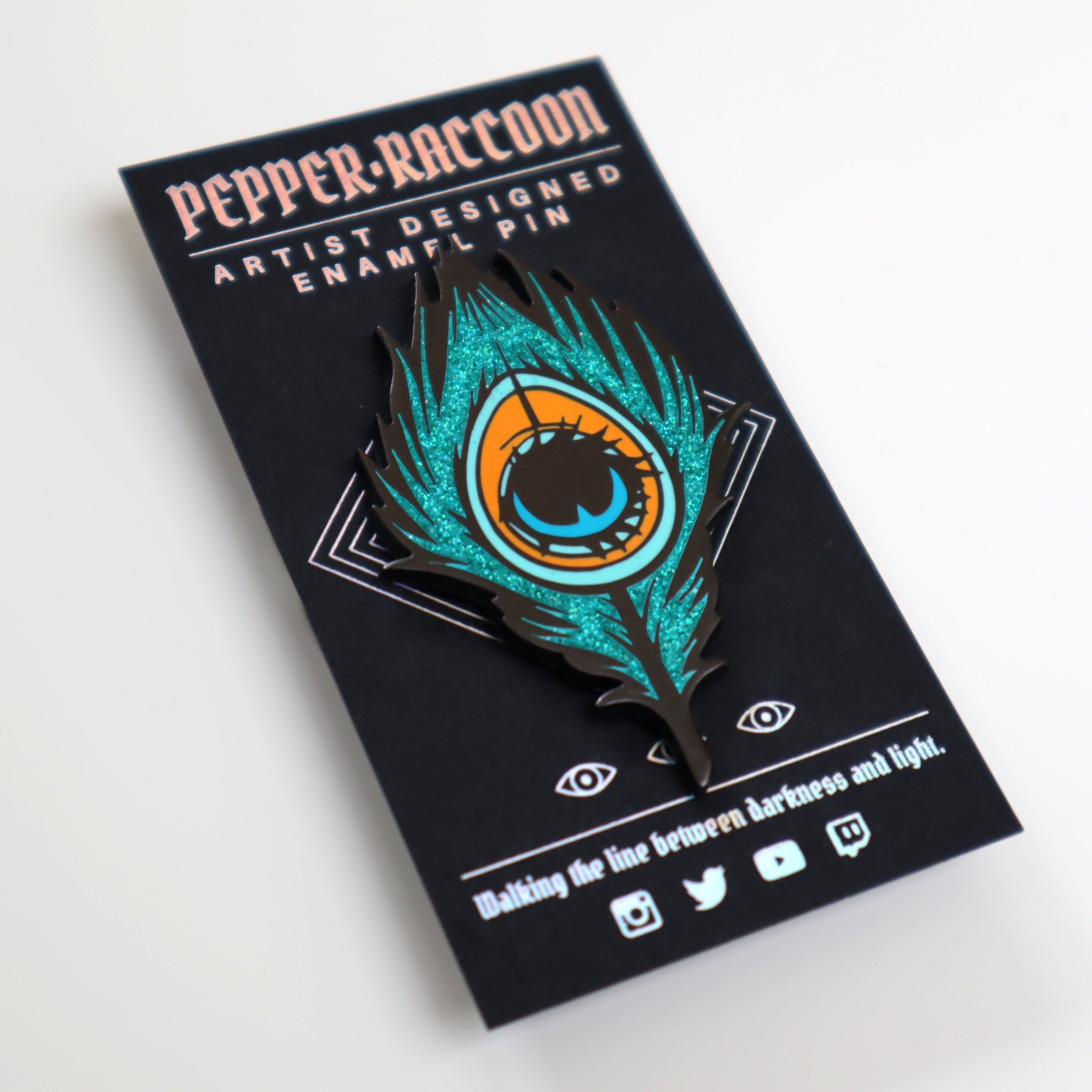 Sparkle with magic! Peacock feathers are the symbol of the Greek goddess Hera, and represent the all-seeing eye and infinite wisdom. Flash a little glitter along with your eternal power with this large, glitter-resin and enamel pin. This exquisite beauty absolutely shimmers! Large enough to be worn as a single decorative piece on a dress or scarf.