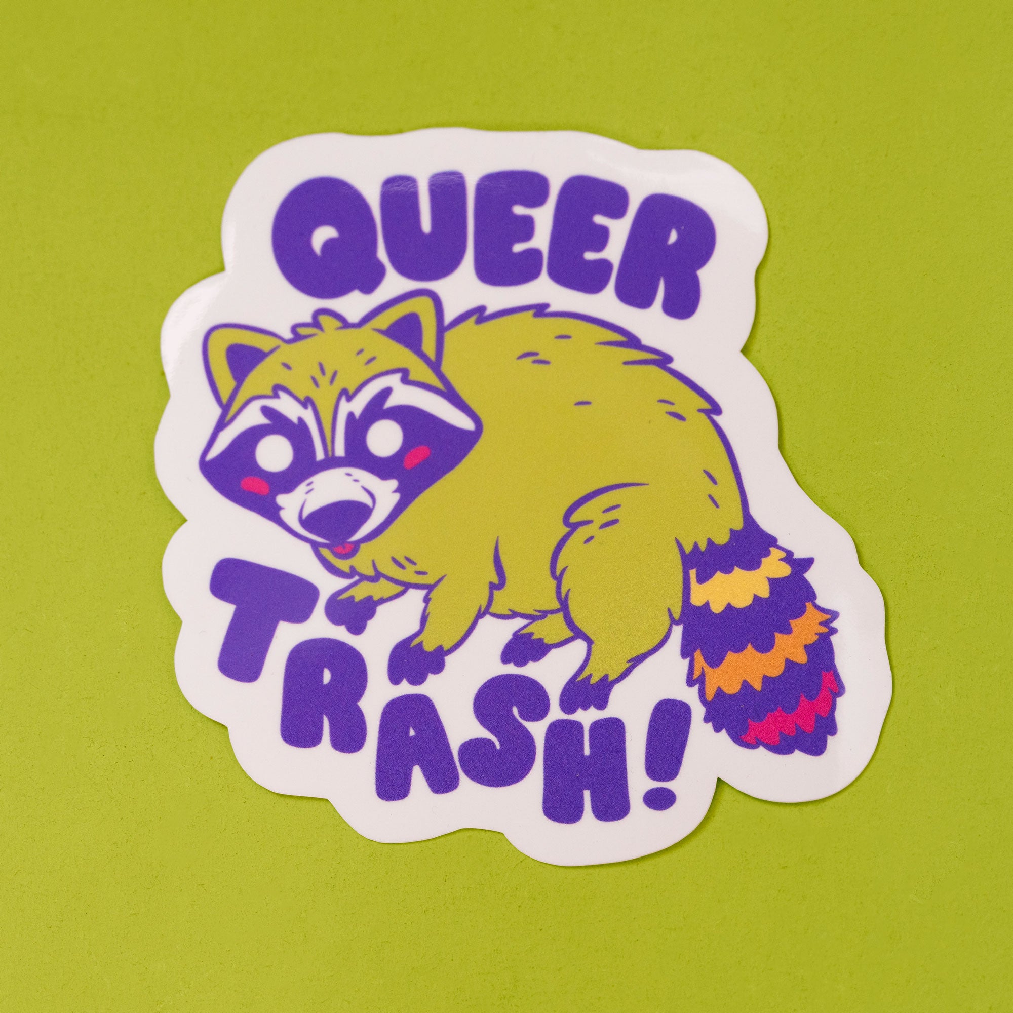 Nyahhhh!!! This salty little raccoon is queer trash and PROUD. Catch him outside how bout dat? With his silly multi-coloured tail and cranky trash-cat energy, how could you NOT want to hang with this funky dude?