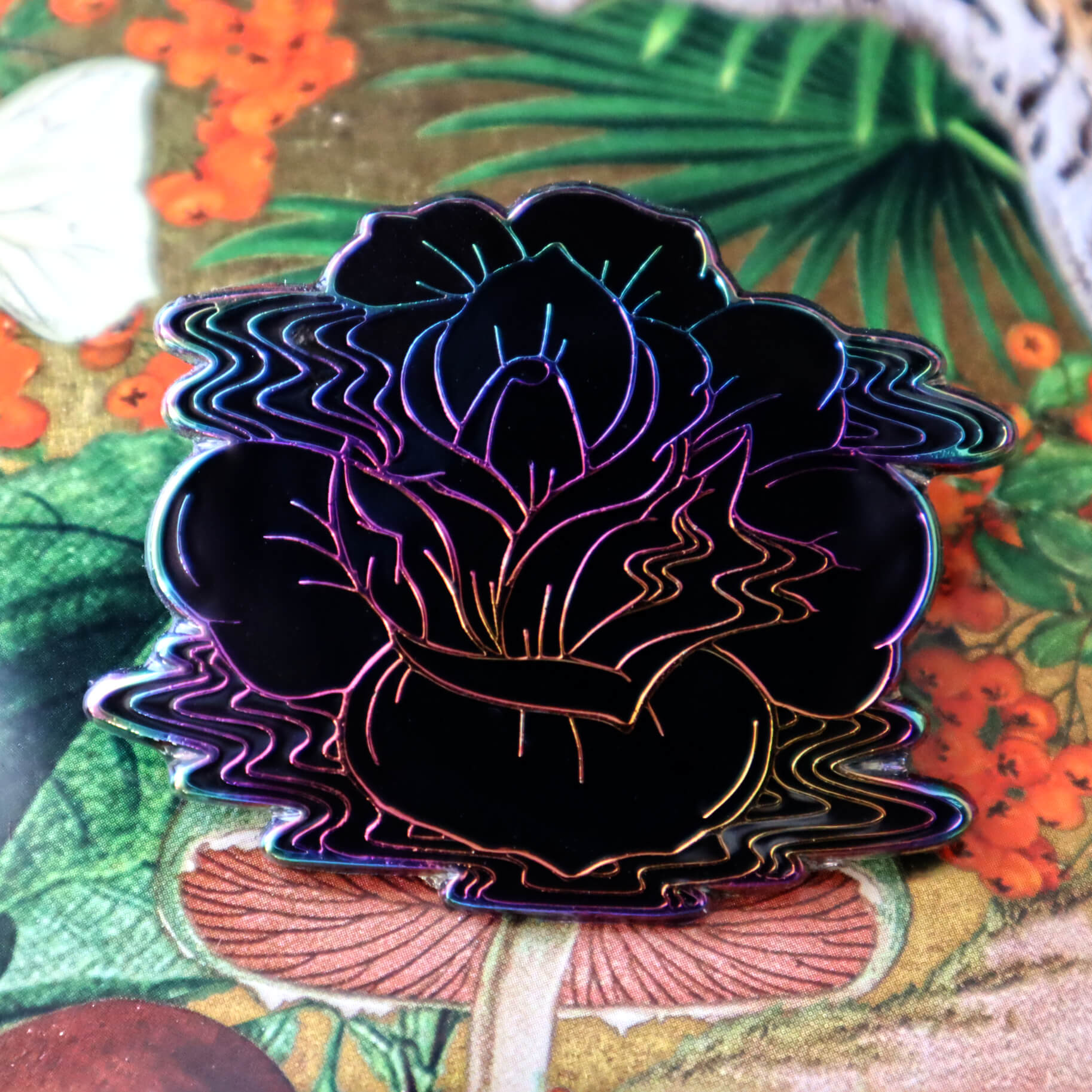 Rainbow Black Rose Enamel Pin