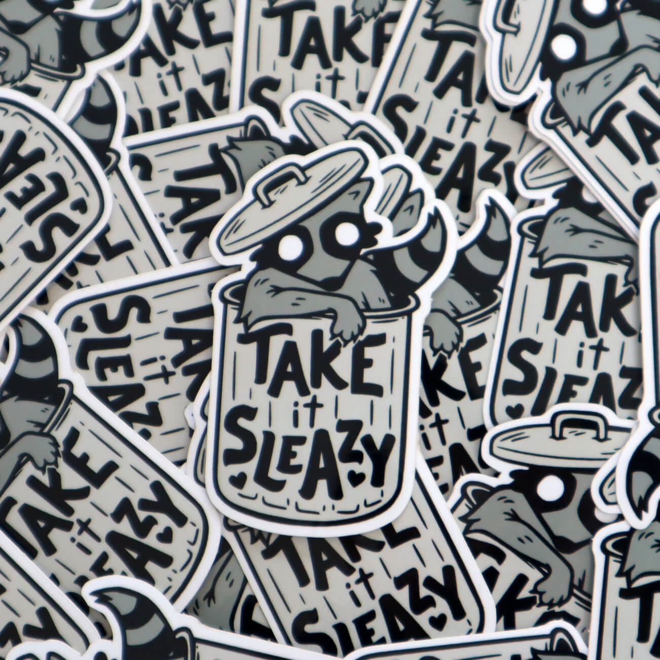 Sleazy Boi keeps it real in his very own trash can. This glossy sticker is UV resistant, and designed for long-wear indoor or outdoor use.