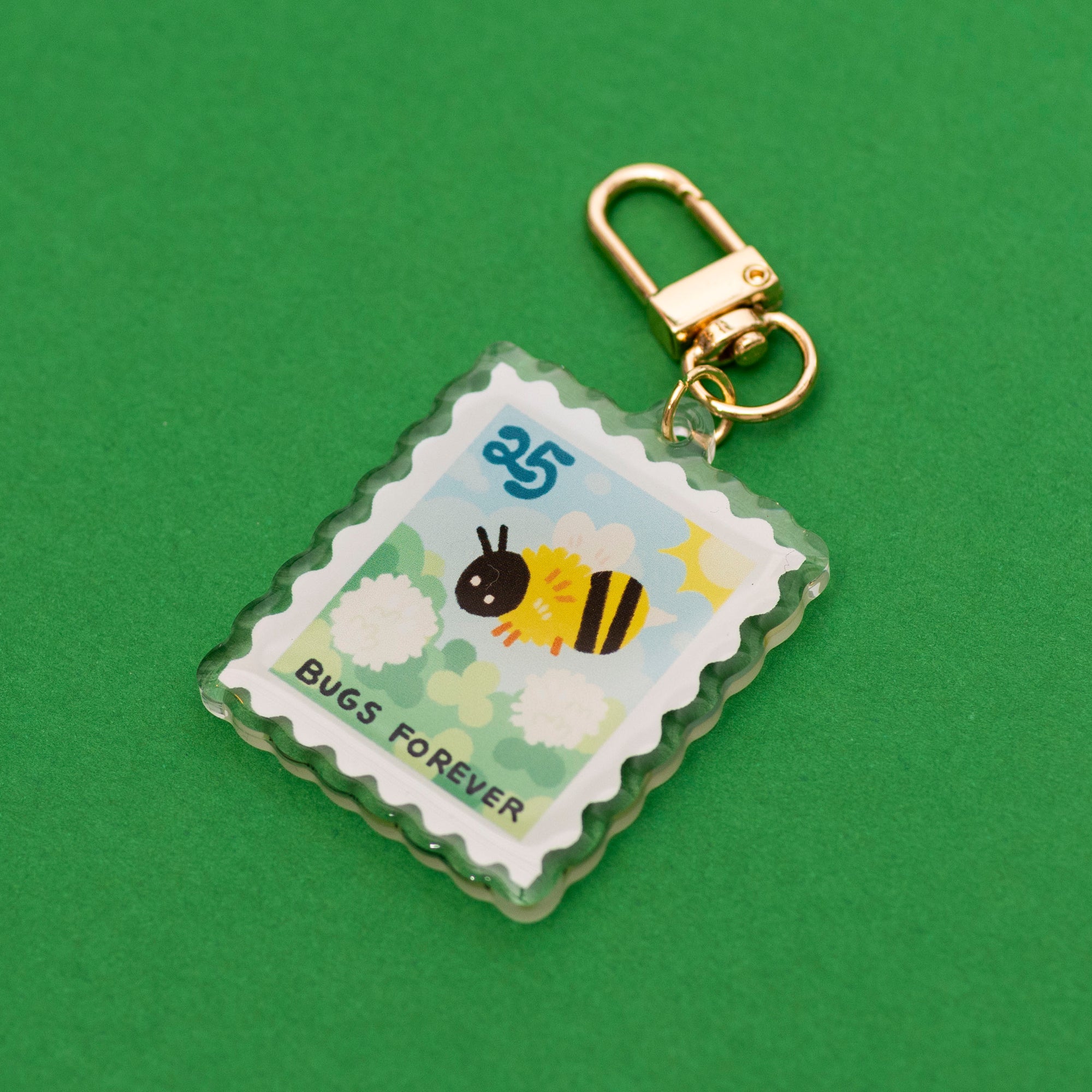 BUGS FOREVER! an adorable little charm in the shape of a stamp.