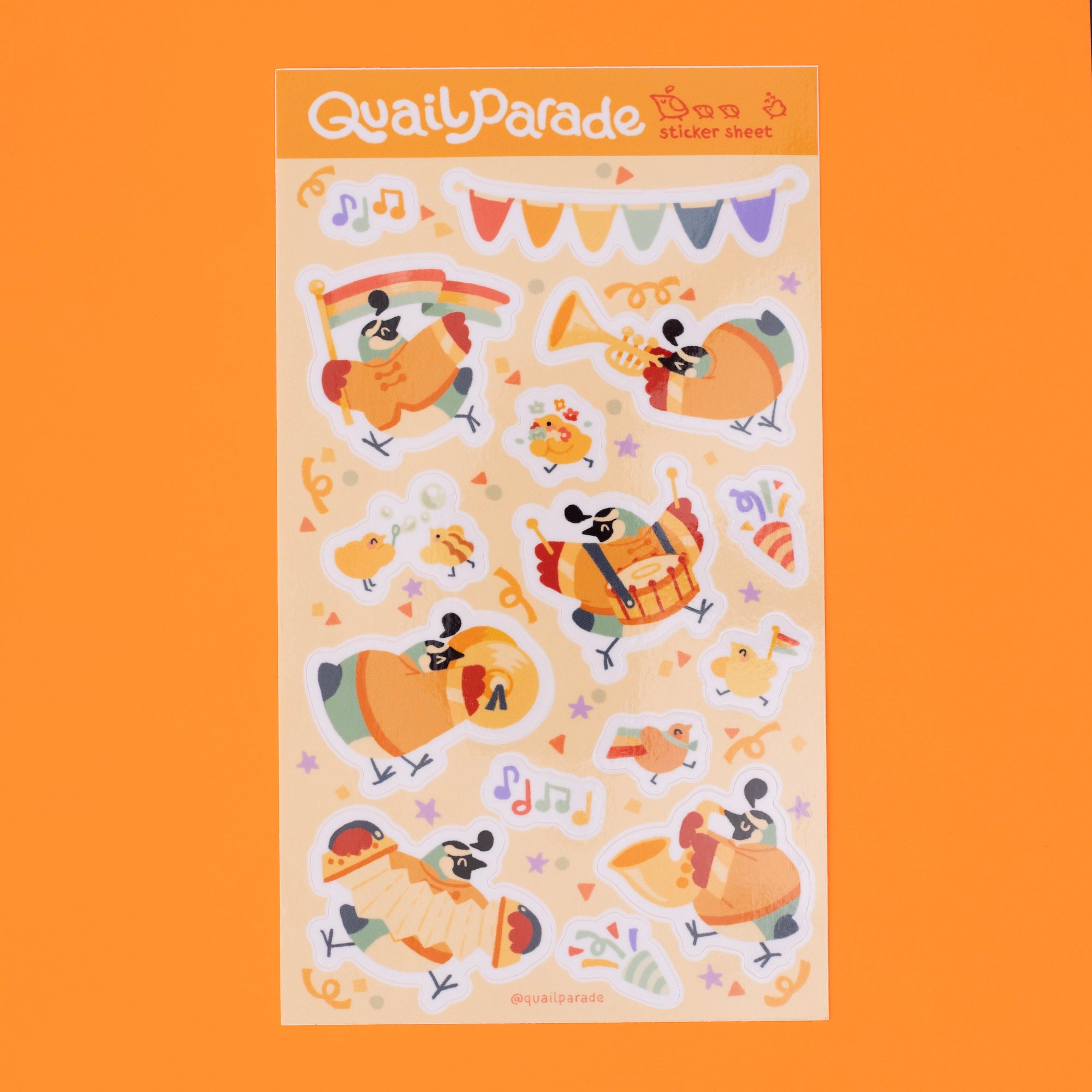 A parade of quails is coming! What are they celebrating? that's up to you!