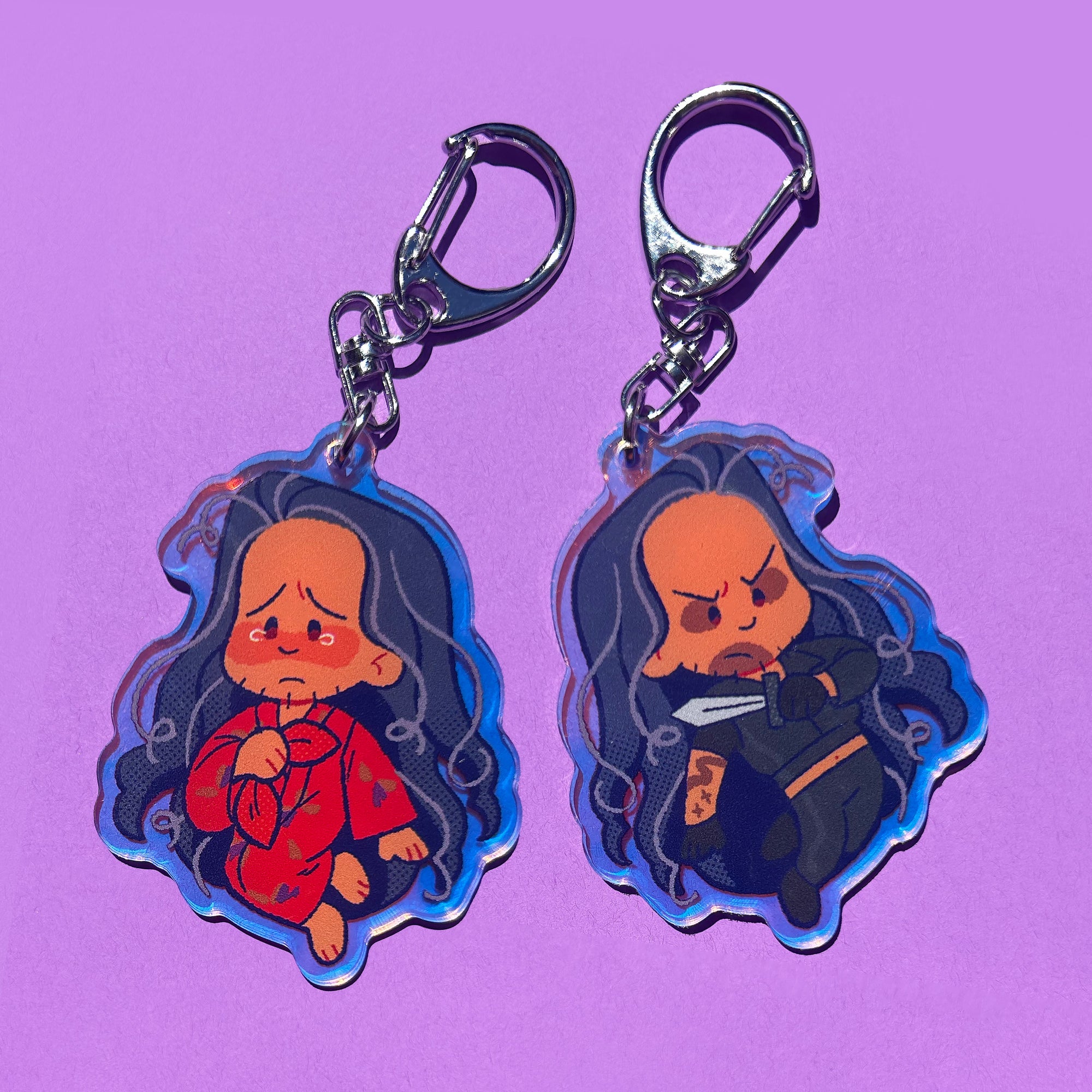 Acrylic with Metal Keychain and Rainbow Holographic Finish