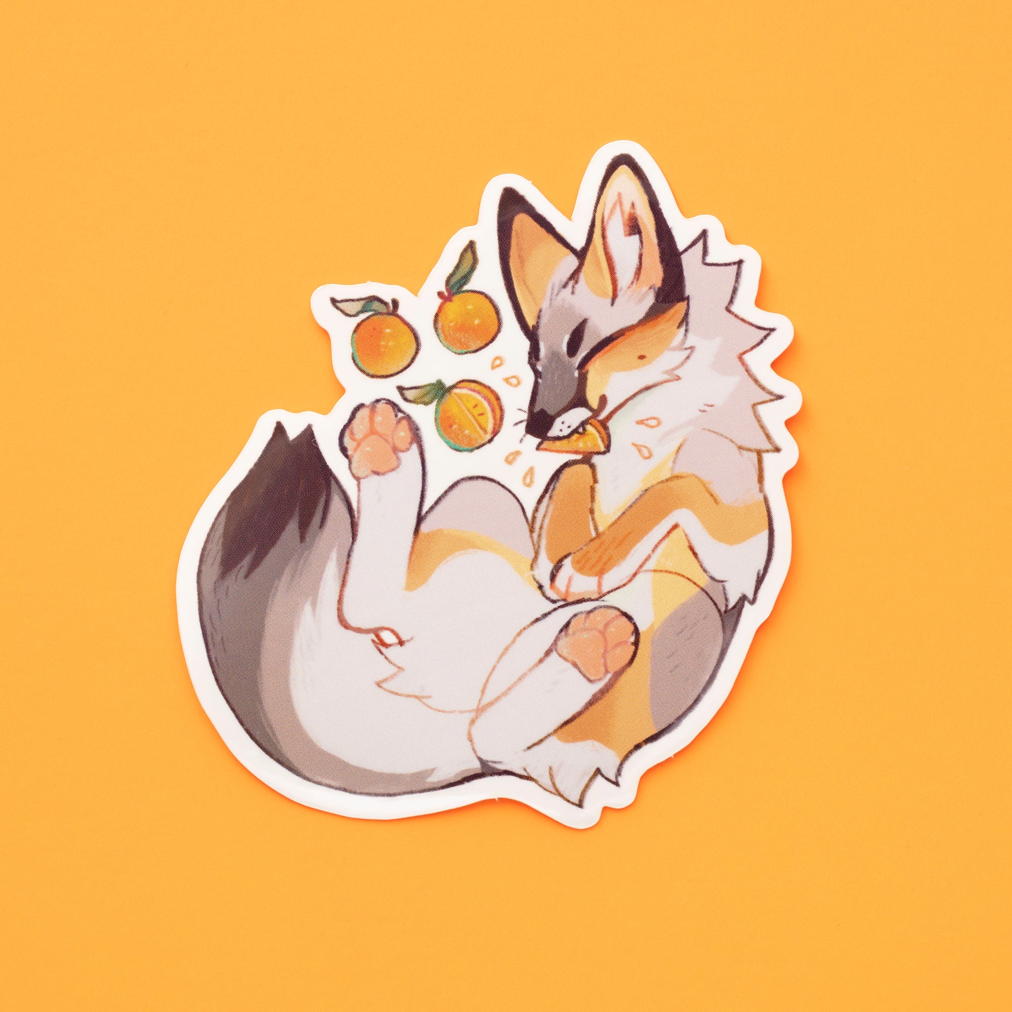 A vinyl sticker of a California gray fox surrounded by citrus!