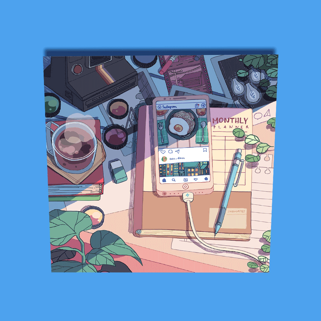 Sleep isn’t coming to me, so I’m on Instagram.Based on the song “Instagram” by Dean, depicting the feeling of mindless scrolling on social media while time slips away. Original Illustration by Snowlattes.