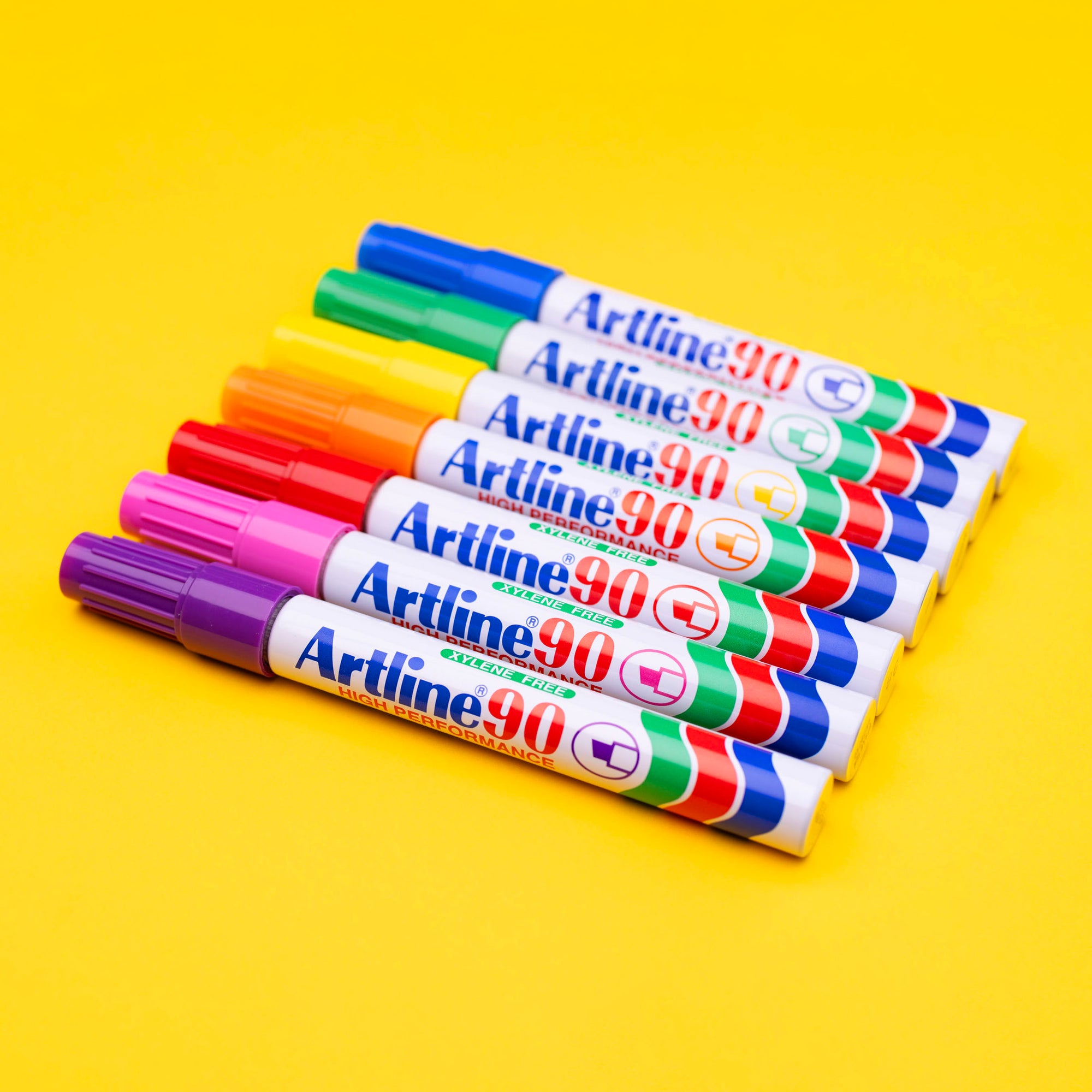 The classic Artline 90 Permanent Marker. Effective on a wide range of surfaces including steel, paper, wood, glass and a wide array of dry surfaces. Featuring a chisel shaped calligraphic 5mm tip.