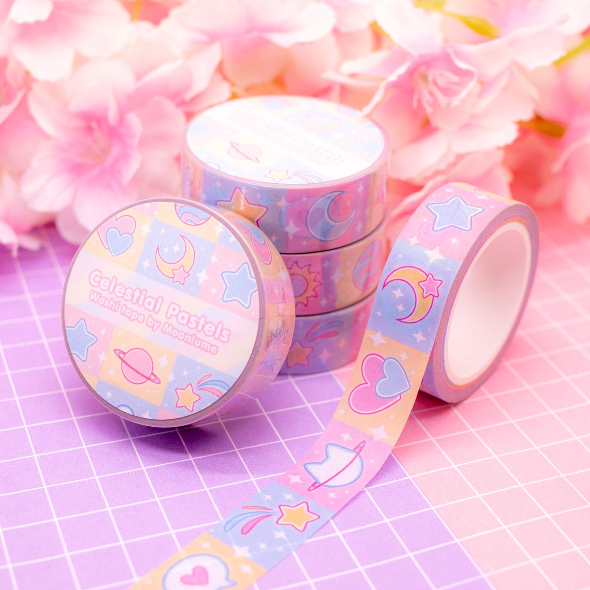 Cute space-themed icons on a washi tape, perfect for decorating notebooks and journals!