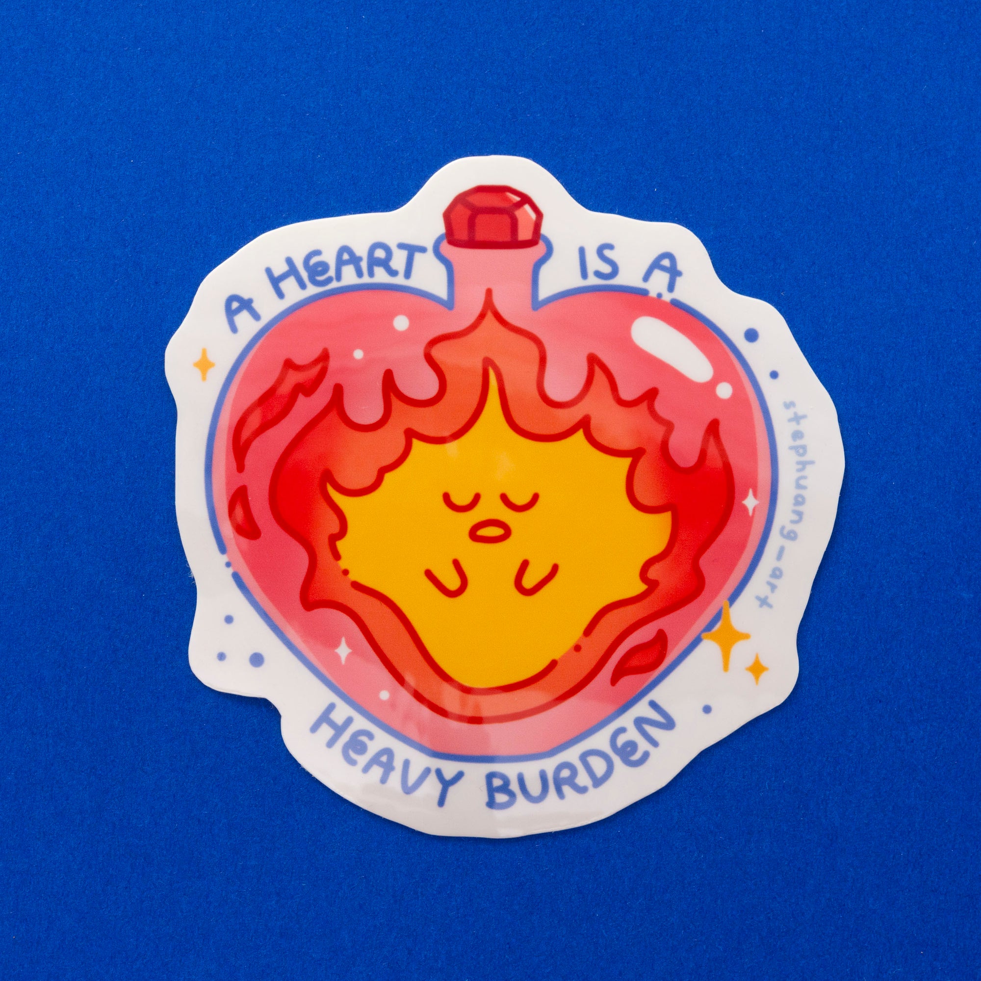 A heart's a heavy burden. This sticker depicts our favorite fire demon Calcifer from the Studio Ghibli film Howl's Moving Castle.