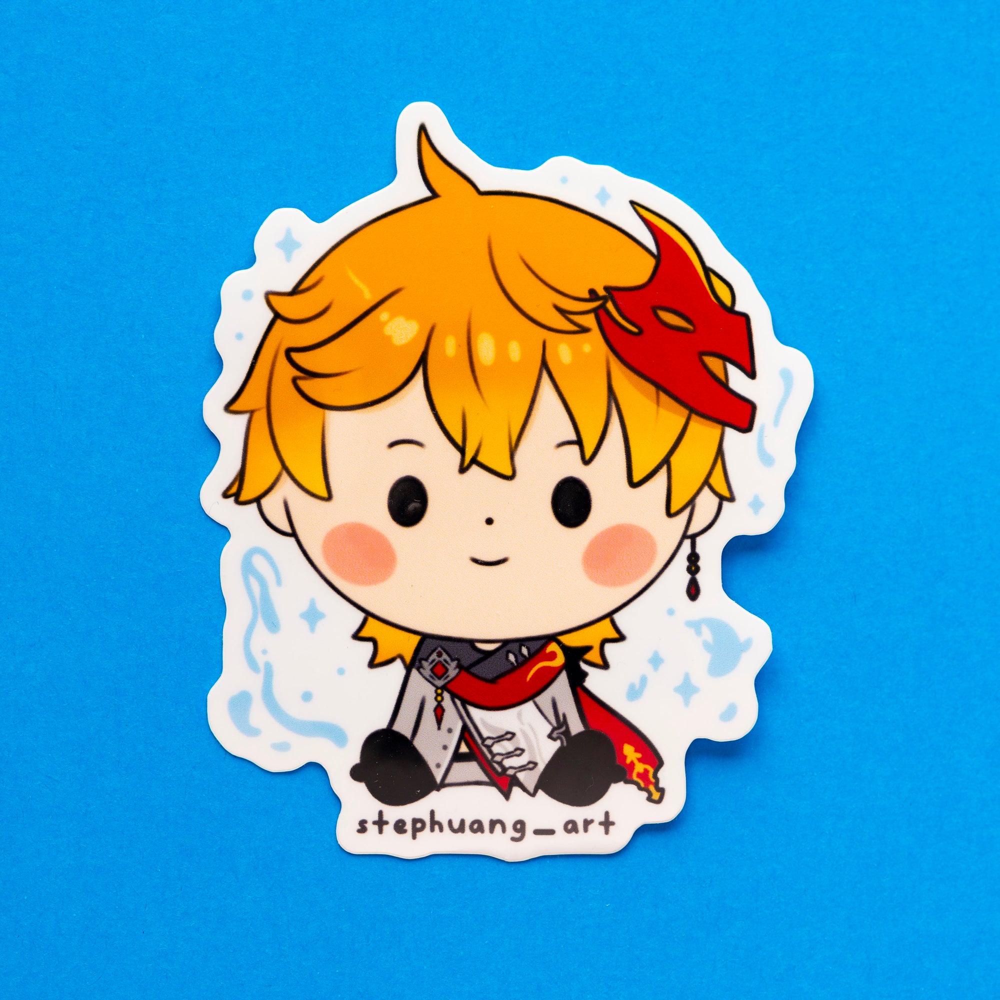 Childe/Tartaglia from Genshin Impact drawn in a cute chibi style by Stephanie Huang
