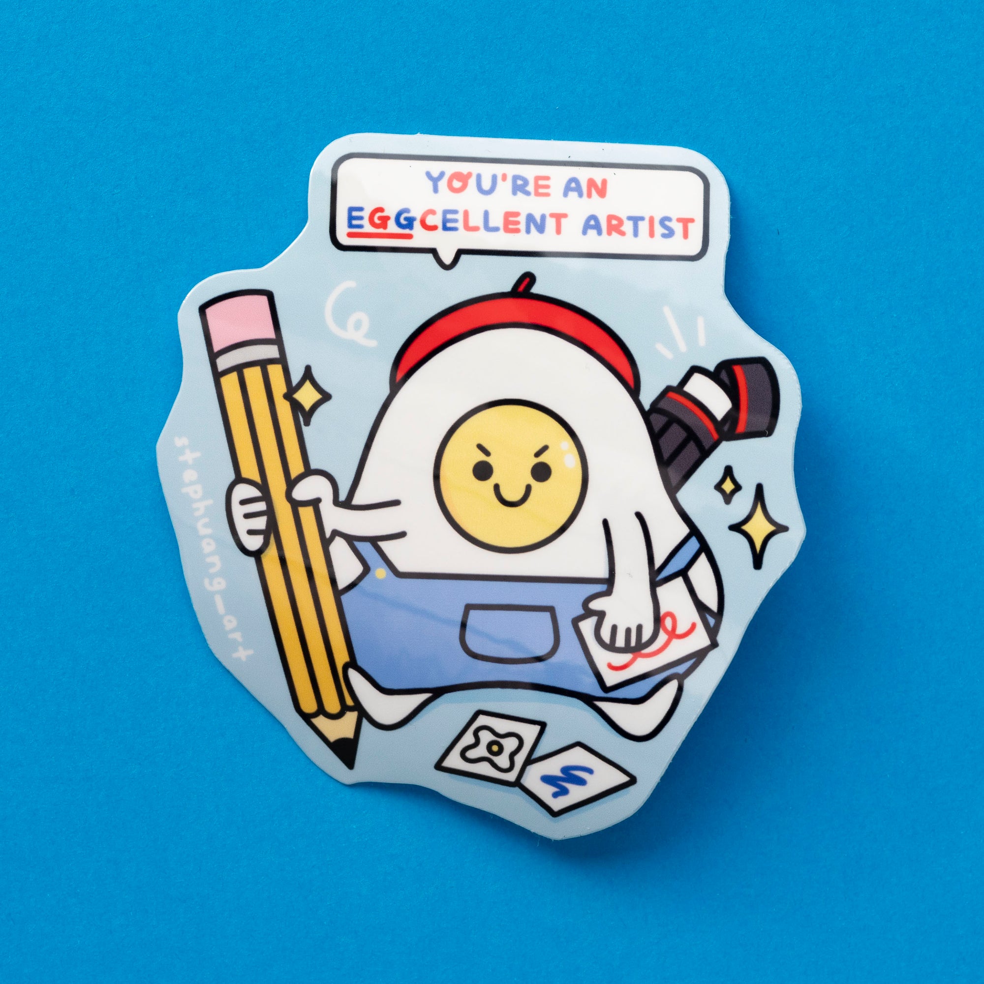 An egg boi that's here to remind you that you're an egg-cellent artist!