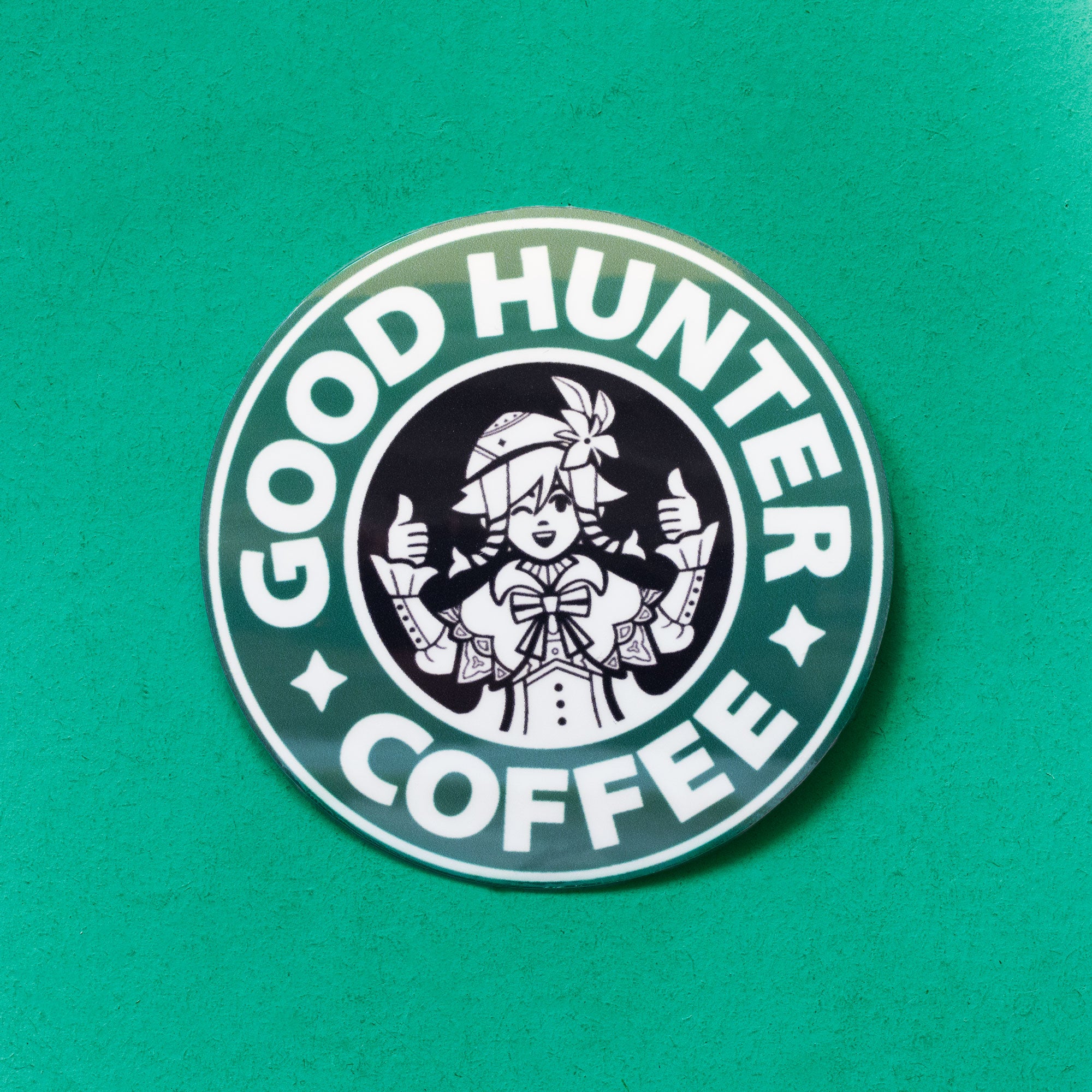 A parody of the Starbucks logo featuring Venti, representing Genshin Impact's familiar Good Hunter eatery down in Mondstadt. Salad, steak, and good coffee!