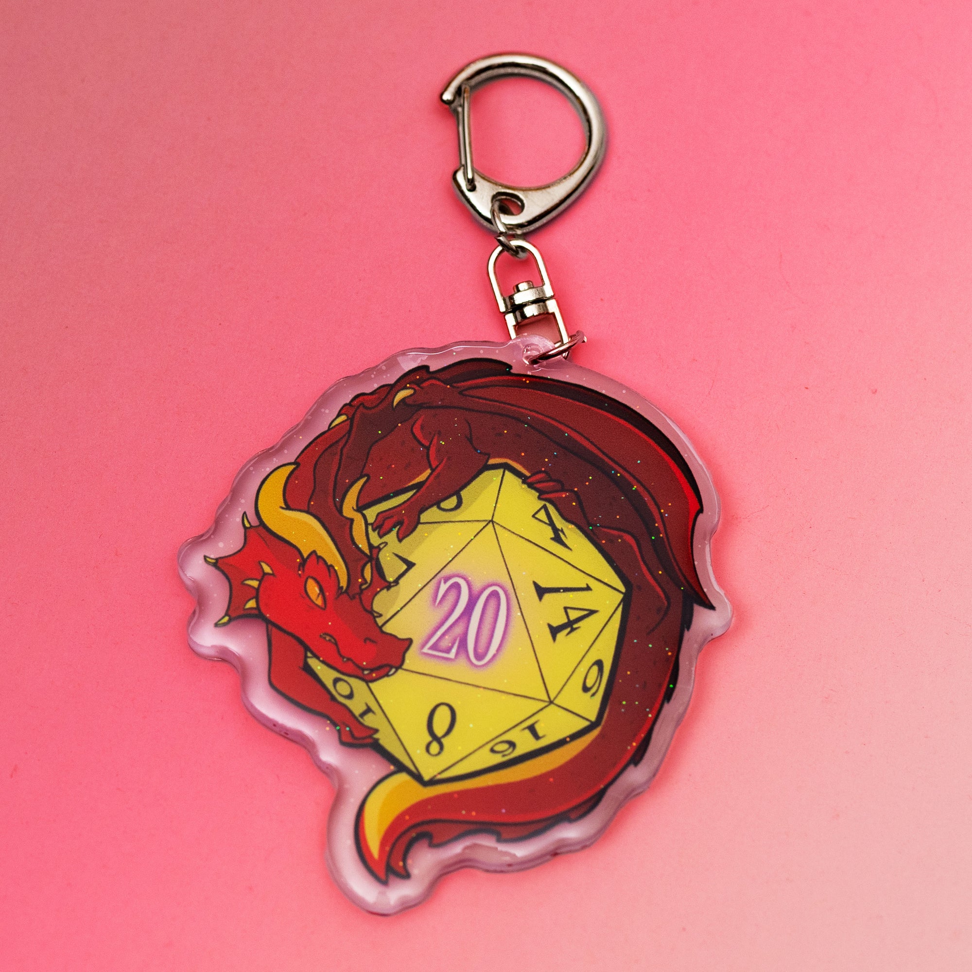 A double sided charm of a Chromatic Red Dragon, keeping their precious hoard safe.