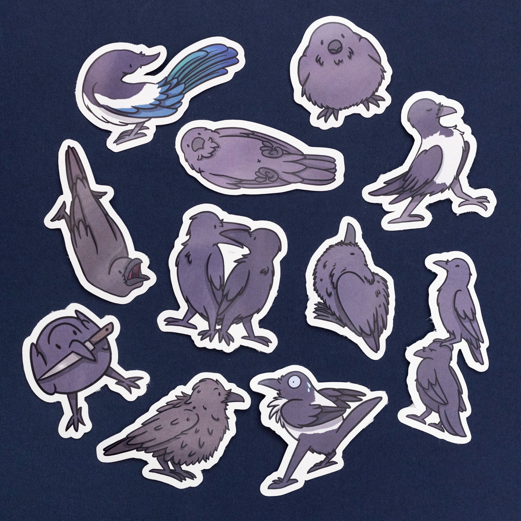 An assortment of varying different shaped corvids! This set includes a total of 11 stickers.