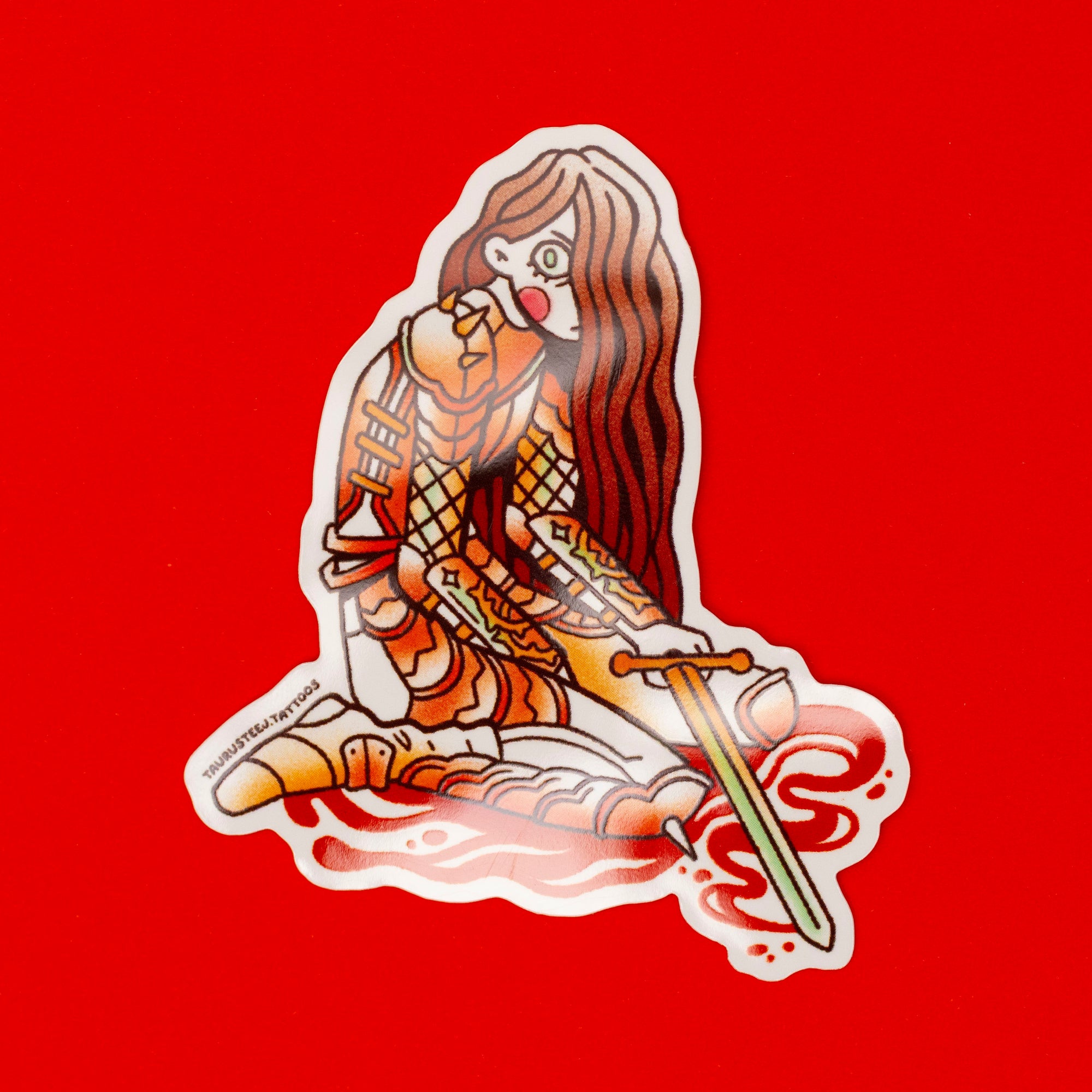 An original sticker featuring the tattoo flash art of Taurus Teej!