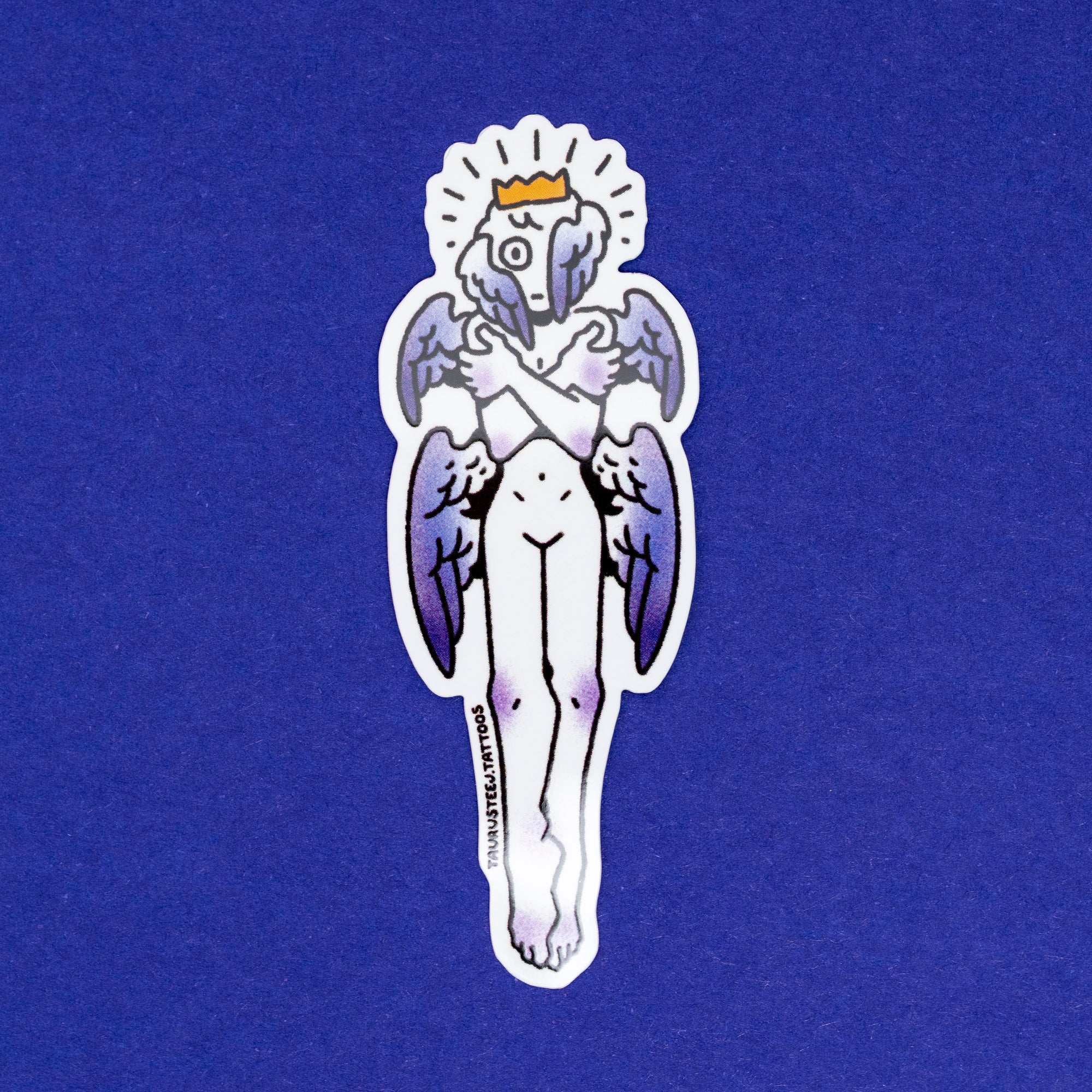 An original sticker featuring the tattoo flash art of Taurus Teej!