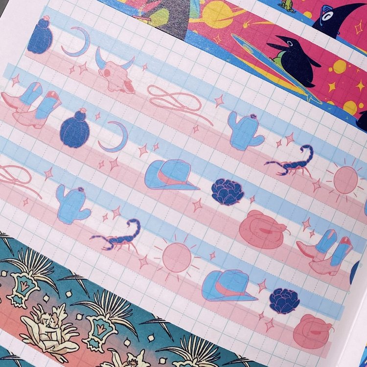 Printed paper tape, perfect for any time you’d use regular tape, only cuter! Use it in planners, journals, scrapbooks, or for sealing and decorating mail. Easily peels off and leaves minimal residue on most surfaces. A perfect gift for the stationery lover in your life - or you!