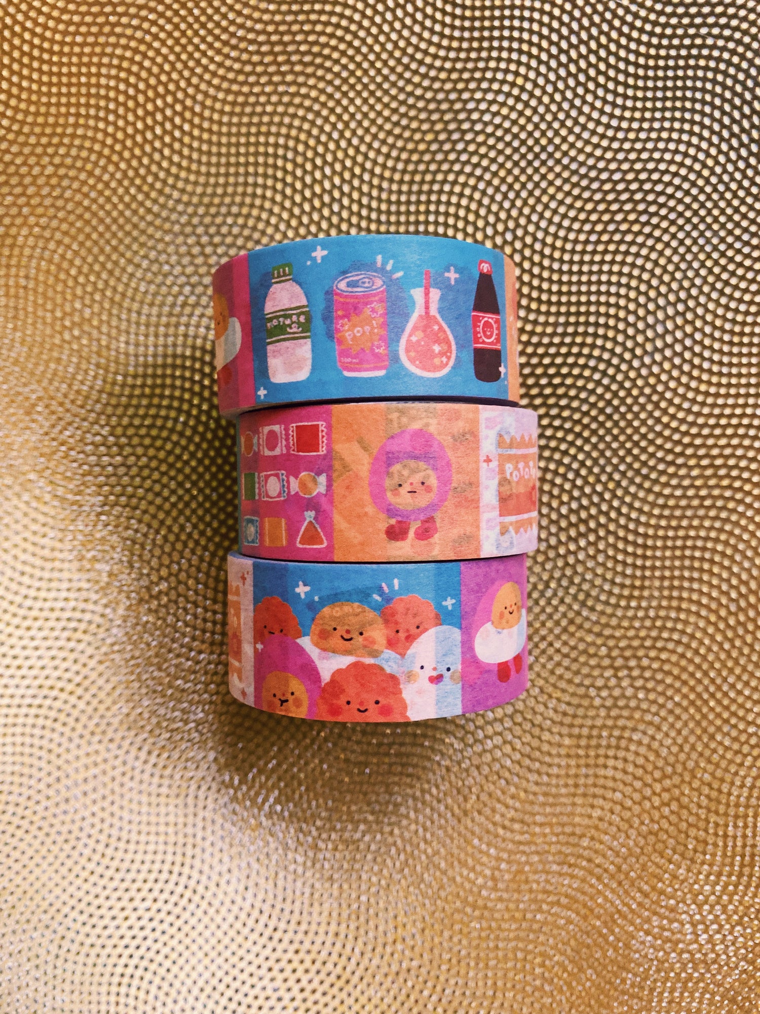 This adorable quilt-style washi tape features classic findings from the sari-sari store (the Filipino equivalent of a corner store!), street foods and various preparations of egg like the kwek-kwek - batter fried quail eggs in a cup - modelled after Angel's Eggo Boi character!