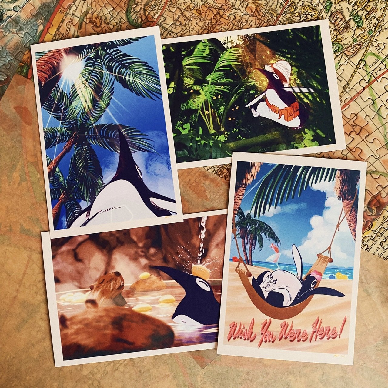 These adorable vintage-style postcards feature some of Honk’s travels and are a perfect pair with the matching vintage travel stamps! The reverse features a side for addressing and correspondence! Choose from 4 wonderful designs or bundle up and save with the full set!