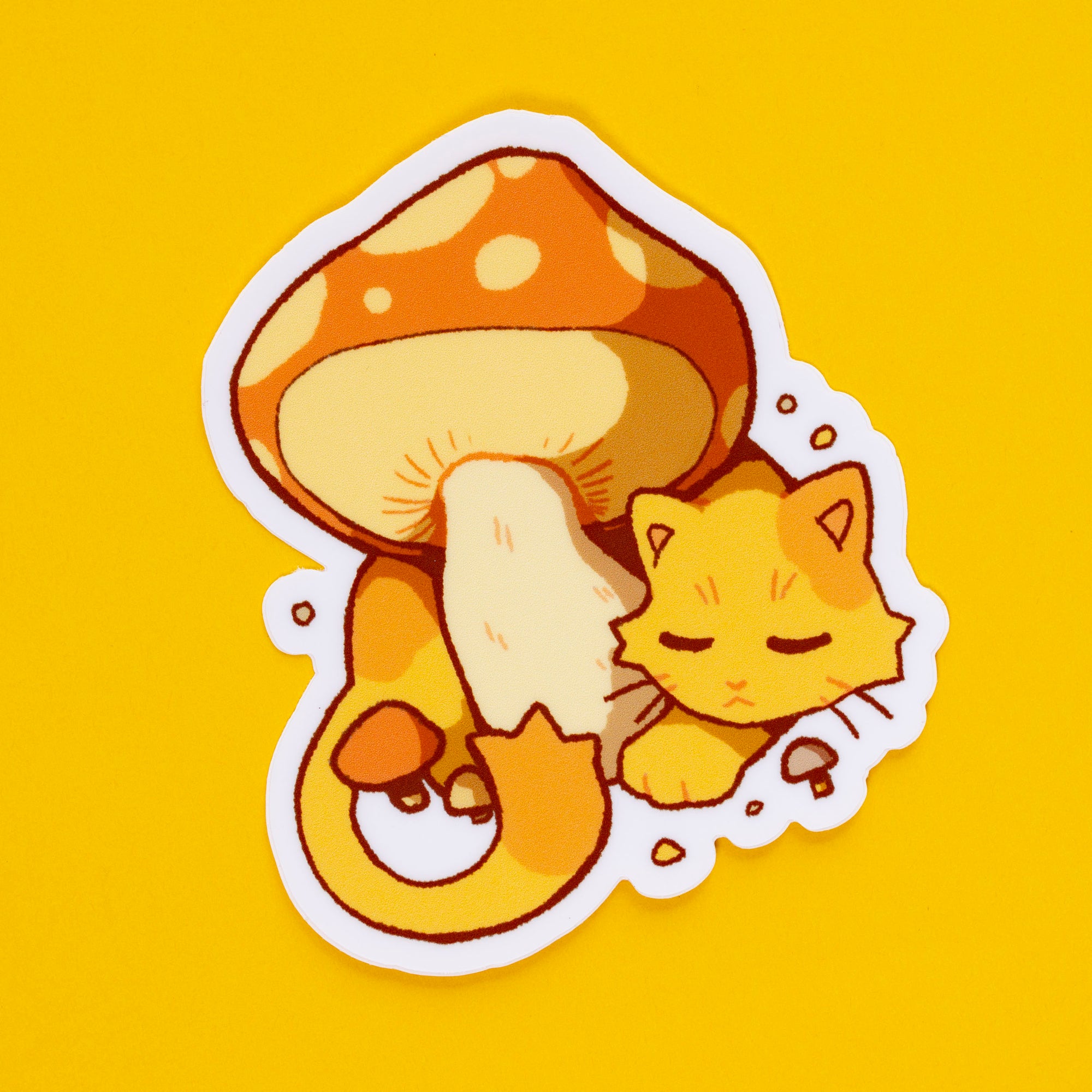this cozy fall kitty is content napping under a mushroom, but would love to come home with you, too!