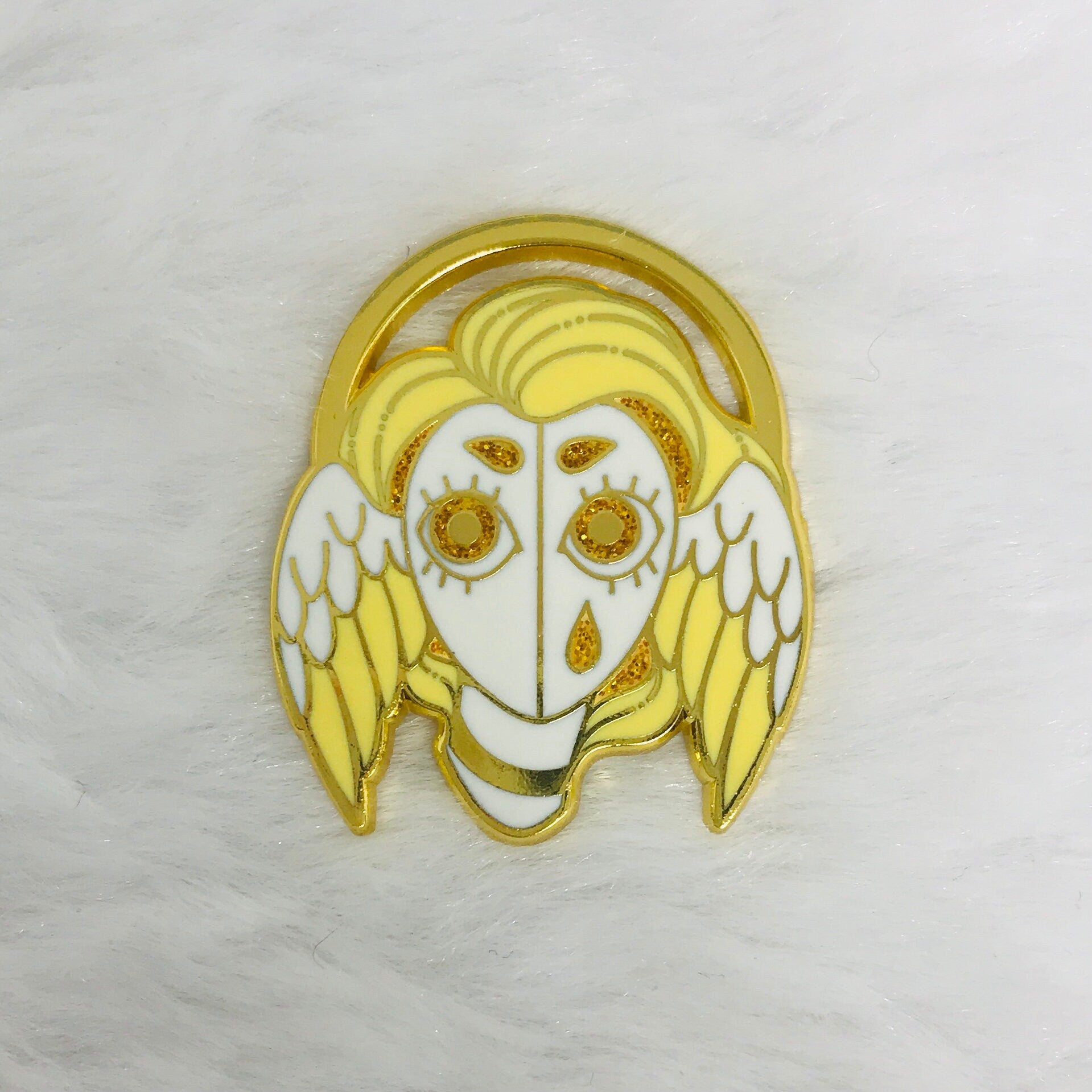 An angel head with wings and a halo.The pin is 1.3 inches (3.5 cm) long. It is gold plated with hard enamel, and has a single pinback with a rubber clutch. It has glitter accents.This listing is for mixed grade pins. You may receive a standard grade pin, which has minimal or no flaws; or a seconds grade pin, which may have more notable flaws. For my complete pin grading policy, please see my About & FAQ: linktr.ee/ultra.infinite