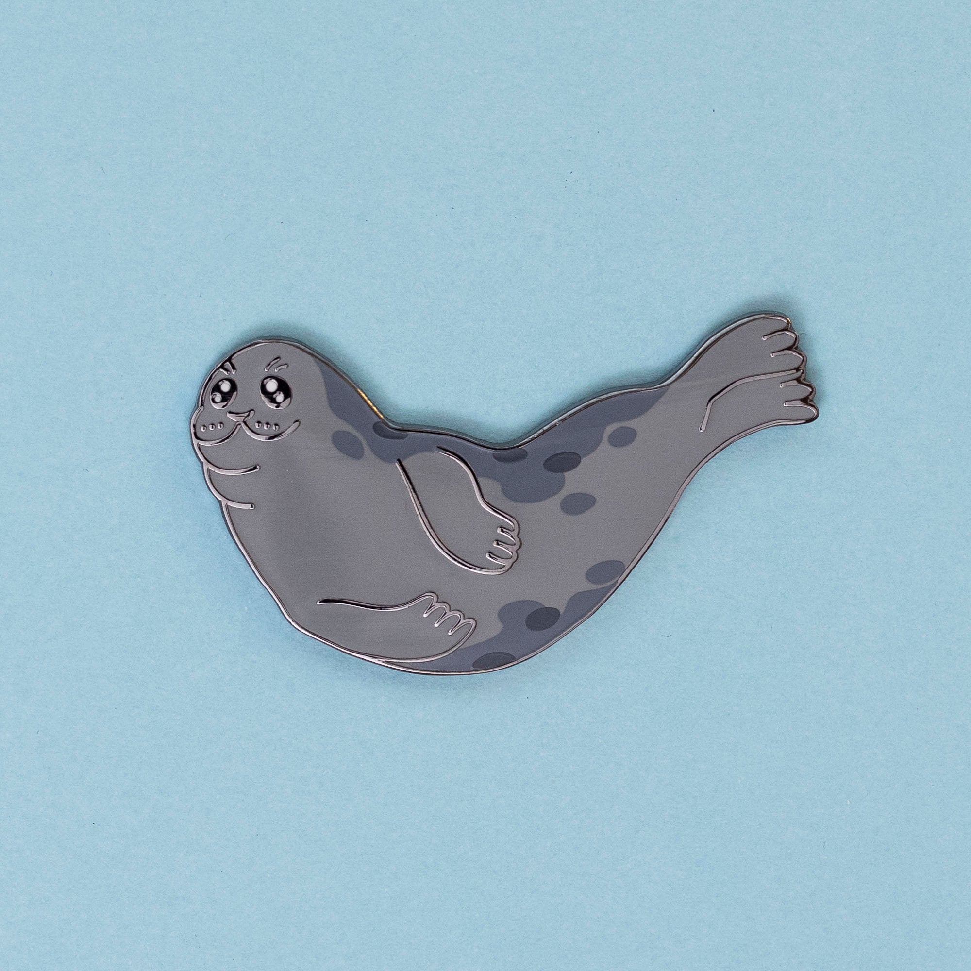 This pin is about 2 in (5 cm) long with black nickel plating and hard enamel. It features screen-printed fur patterns.