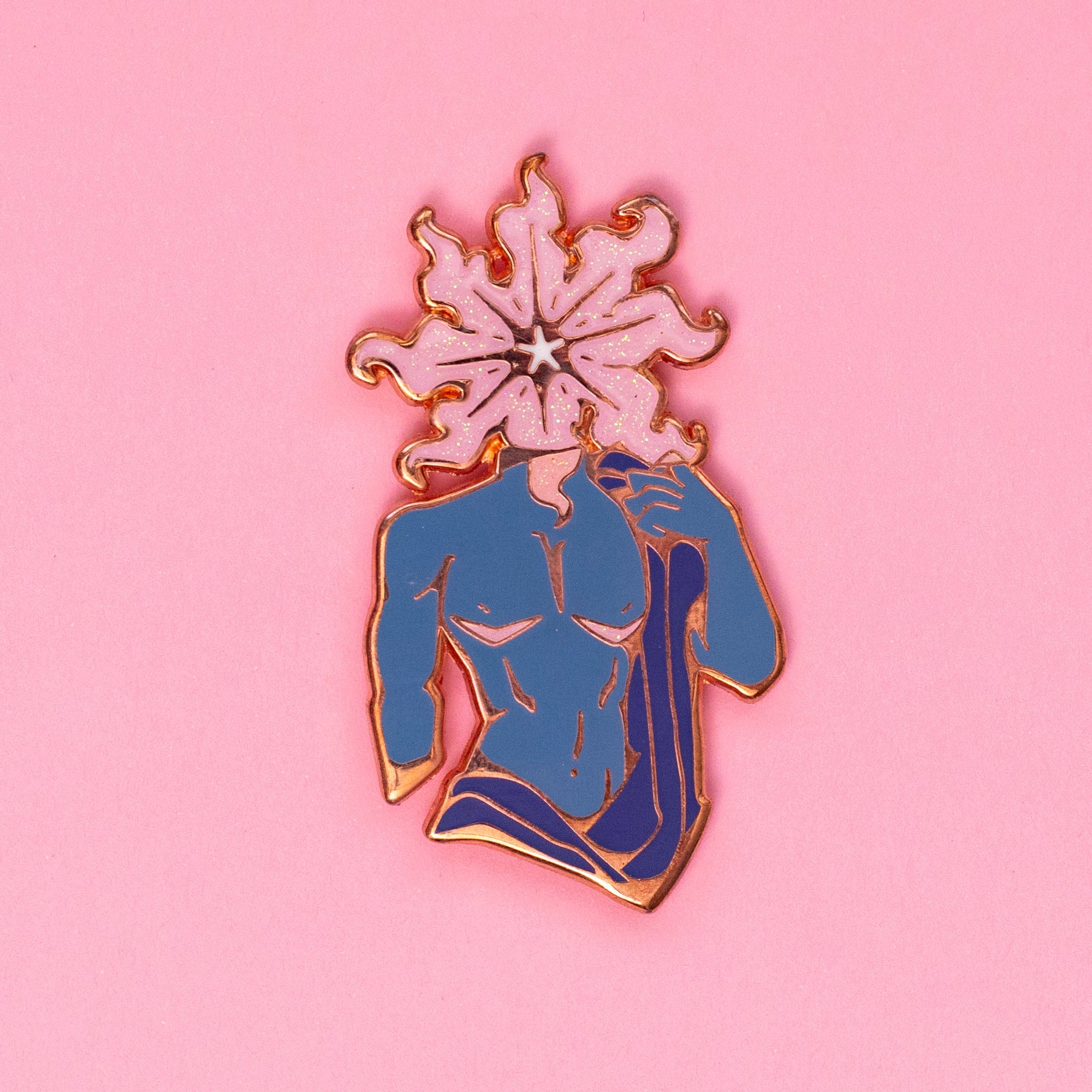 The pin is available in white with gold plating; or blue with rose gold plating.
