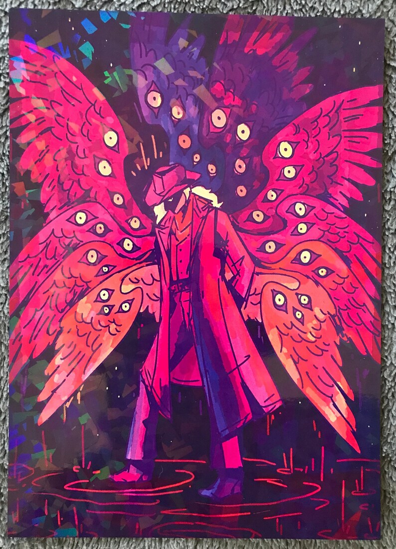 The print is 5 x 7 inches (12 x 17 cm) and holographic. It is printed on heavy cardstock.