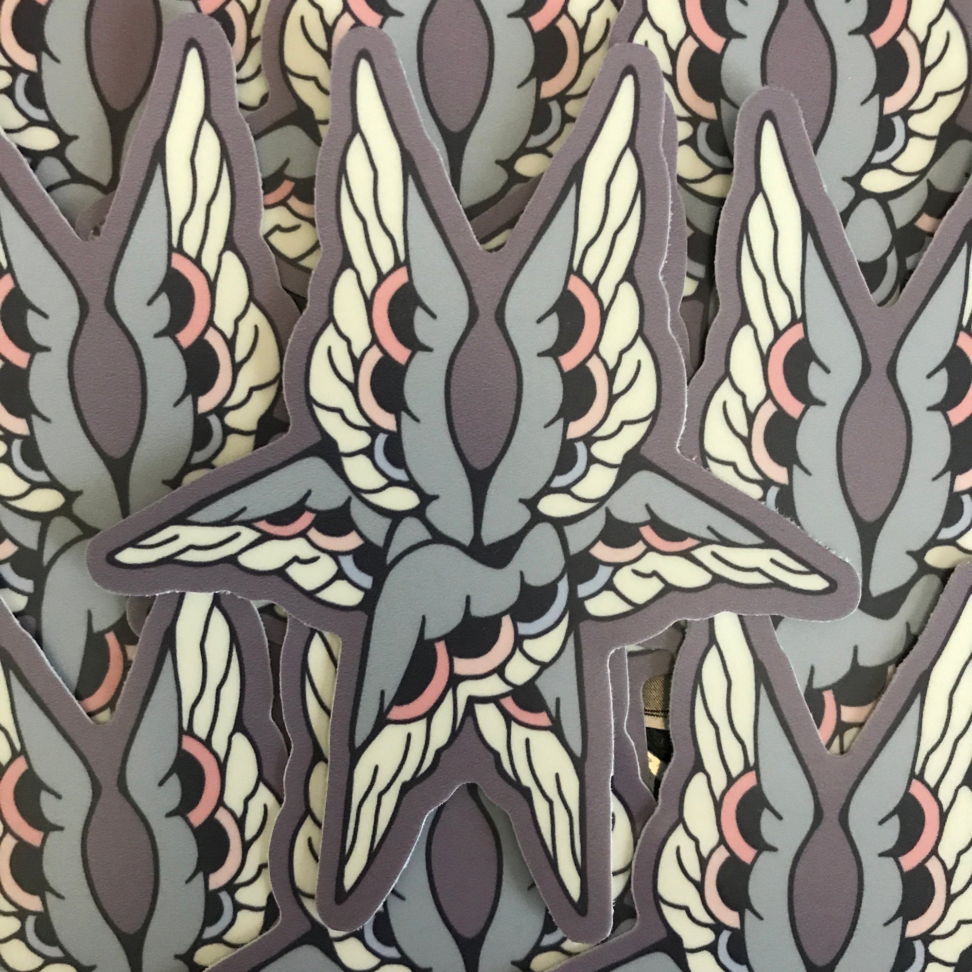 A many-winged, many-eyed angel for Cupioromantic pride.This sticker is approximately 3 inches (7.6 cm) on the longest side, and printed on matte vinyl.