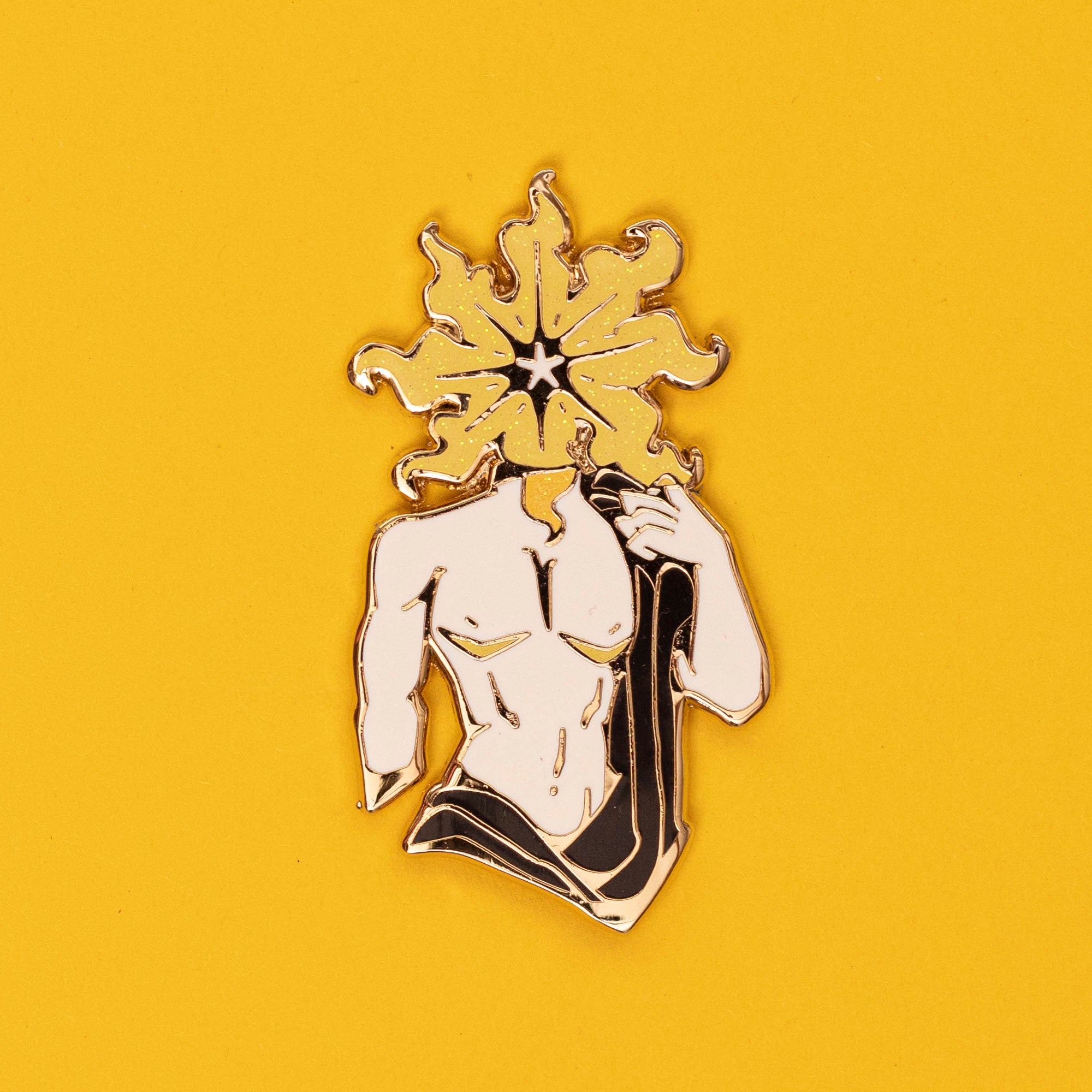 The pin is available in white with gold plating; or blue with rose gold plating.
