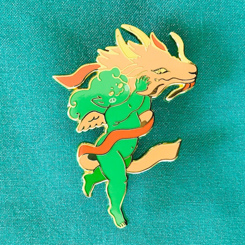 A little putto (cherub) for the Year of the Dragon.Each pin is about 2 inches (5 cm) long with gold plating and screenprint. They have two pin posts and rubber backings. This listing is for seconds grade pins only. They mostly have some specks in the plating on the horns; and small dents in the enamel. For my complete pin grading policy, please see my About & FAQ: linktr.ee/ultra.infinite
