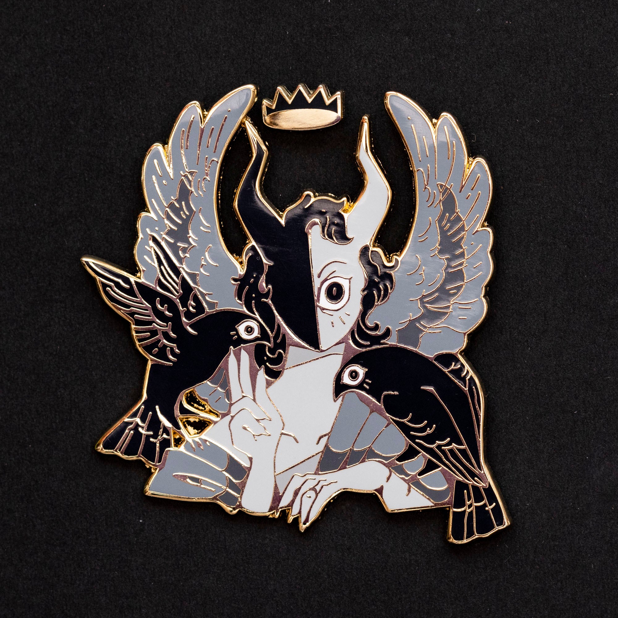 Naberius is available in indigo soft enamel with dyed metal and epoxy; or gray hard enamel with gold plating.