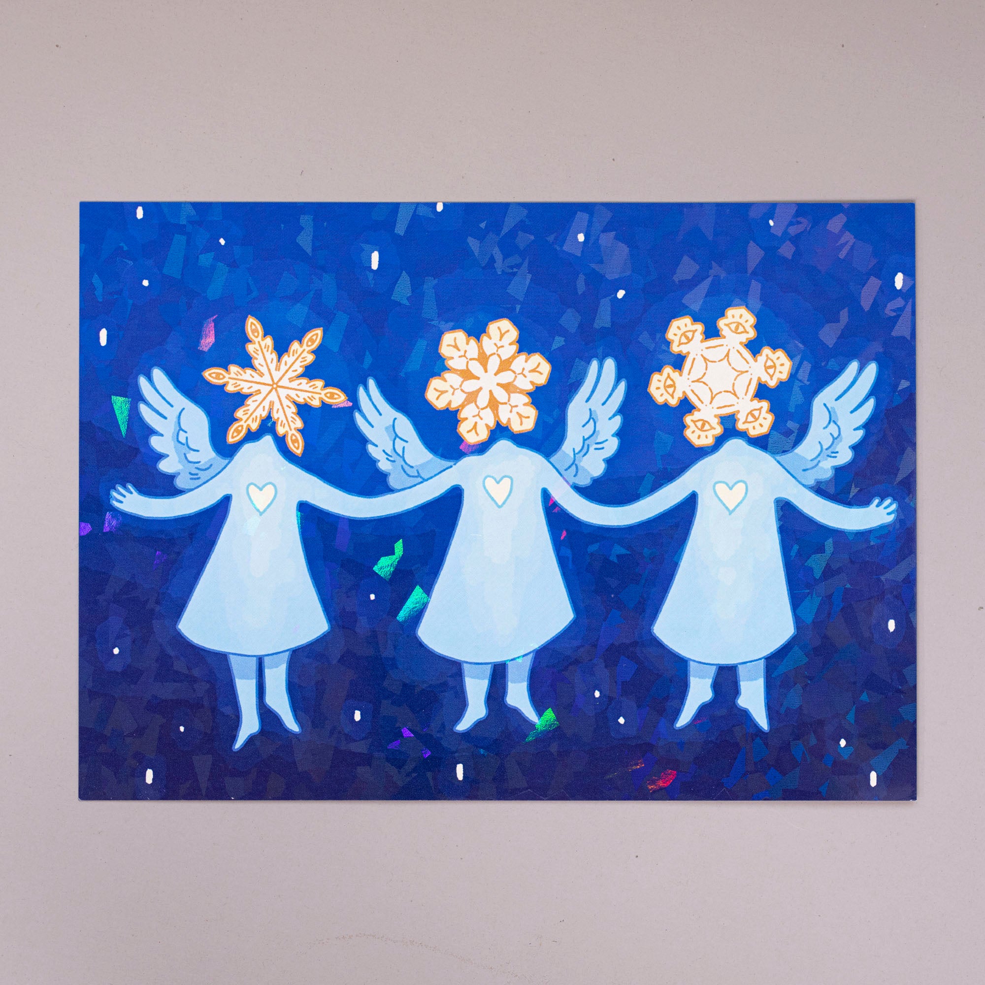My illustration for Angeltober 2022, for the prompt "Pure."The print is 5 x 7 inches (12 x 17 cm) and holographic. It is printed on heavy cardstock.