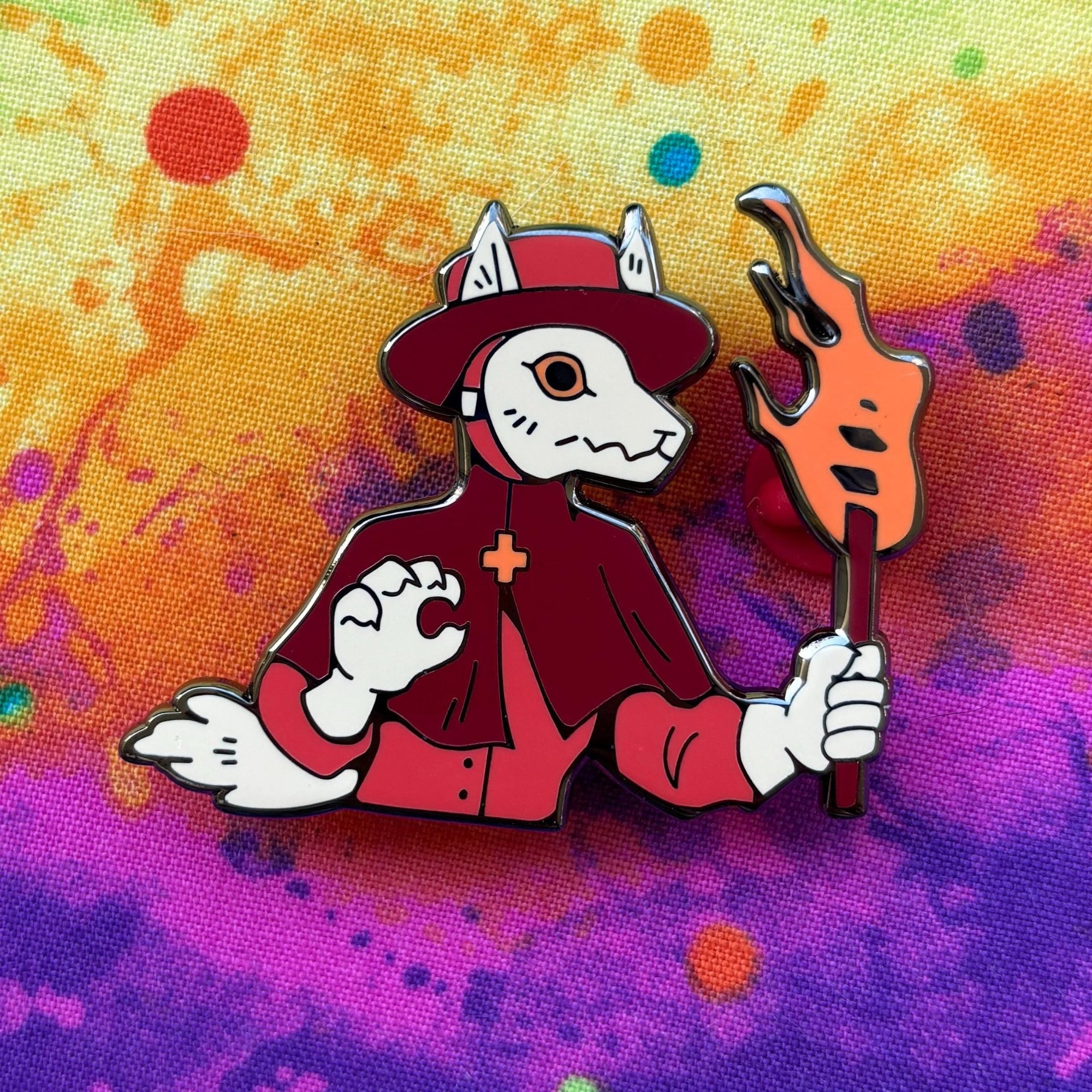 | Hard enamel, black nickel plating, two pin posts. About 1.9 inches wide. |