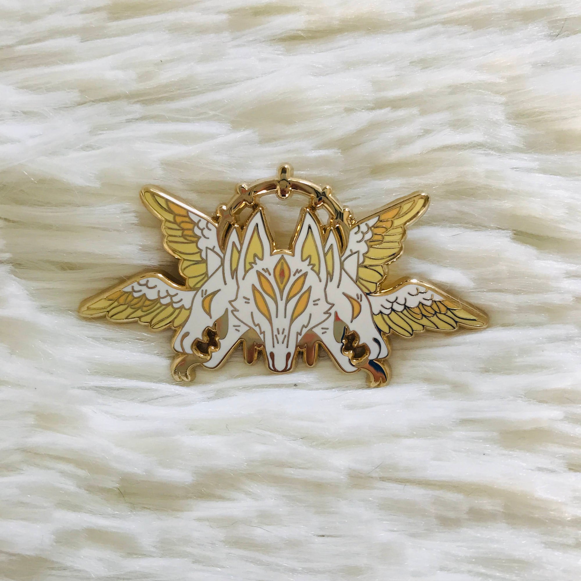 Cerberus Cherubim loves going on walks and enacting holy vengeance. The pin is 2 inches (6 cm) wide. It has two pinbacks with rubber clutches. This pin is part of my angel-themed pin series, Angelology. This listing is for standard grade pins only. Standard grade pins may have one or two tiny imperfections.