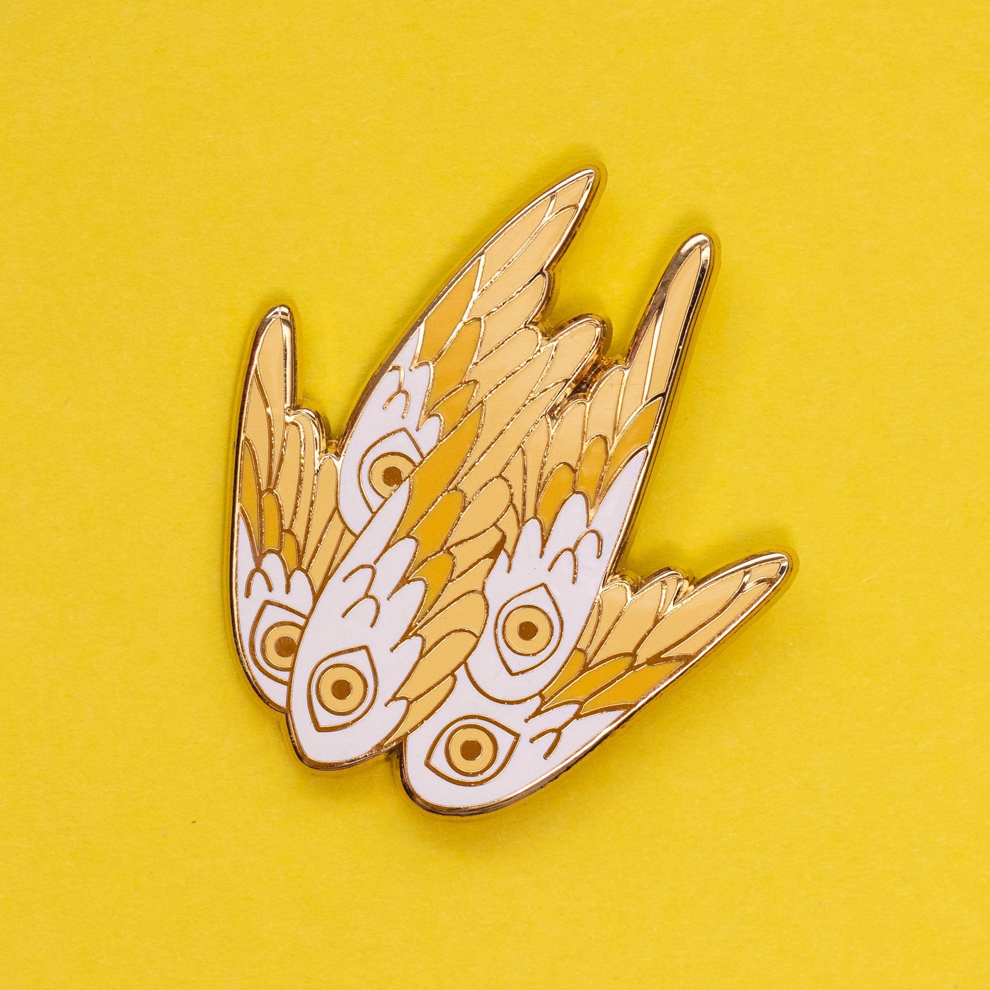 This pin is part of my angel-themed pin series, Angelology. The Flying Seraphim is available in: blue or red.