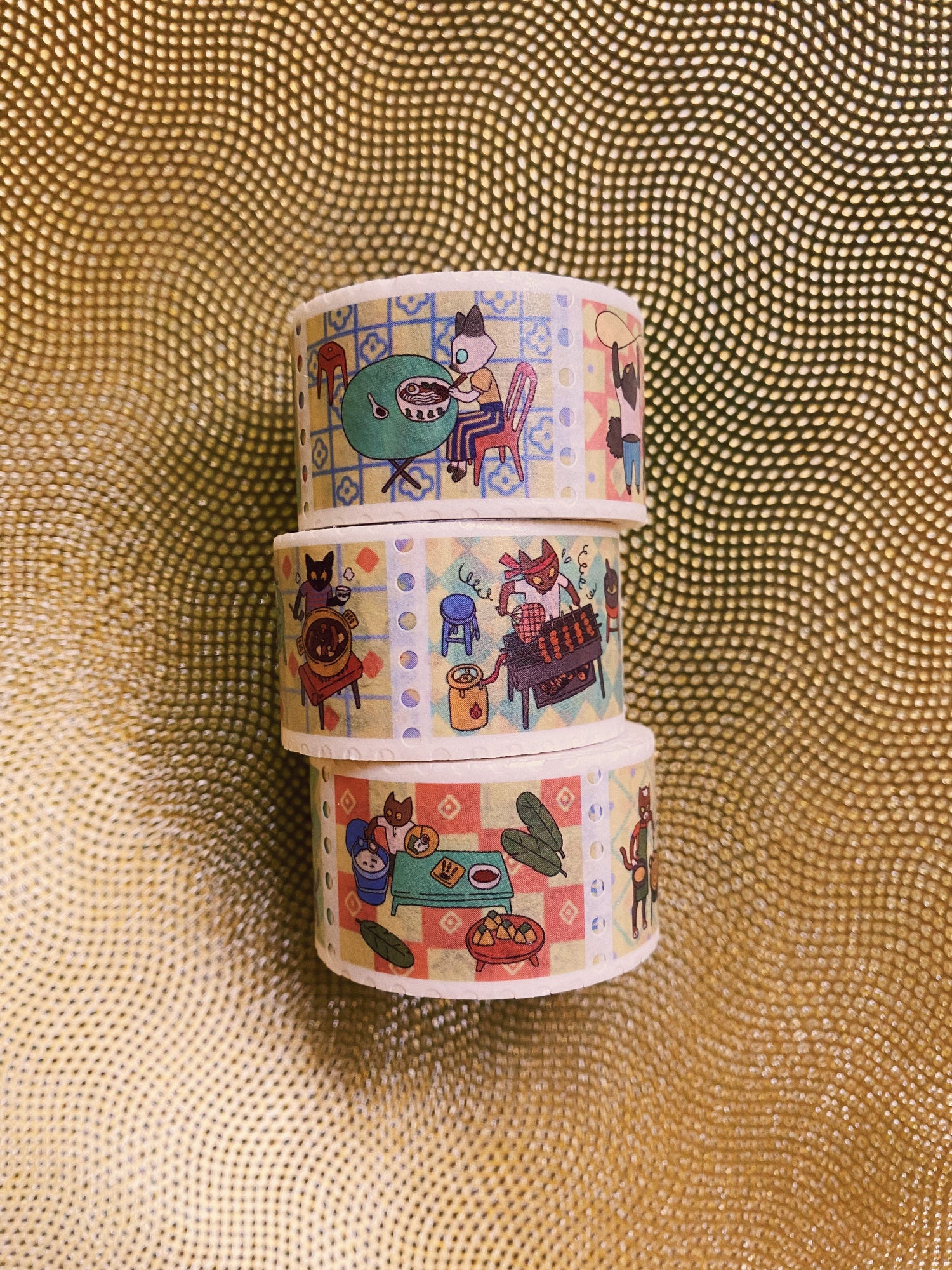 For AAPI Heritage month, we’re spotlighting and celebrating the work of Southeast Asian (SEA) creators and culture! This adorable stamp design features some kitties cooking classic Malaysian fare! (You can read about everything they're cooking below). A complementary postcard-sized print is available alone or in combination with the washi tape!