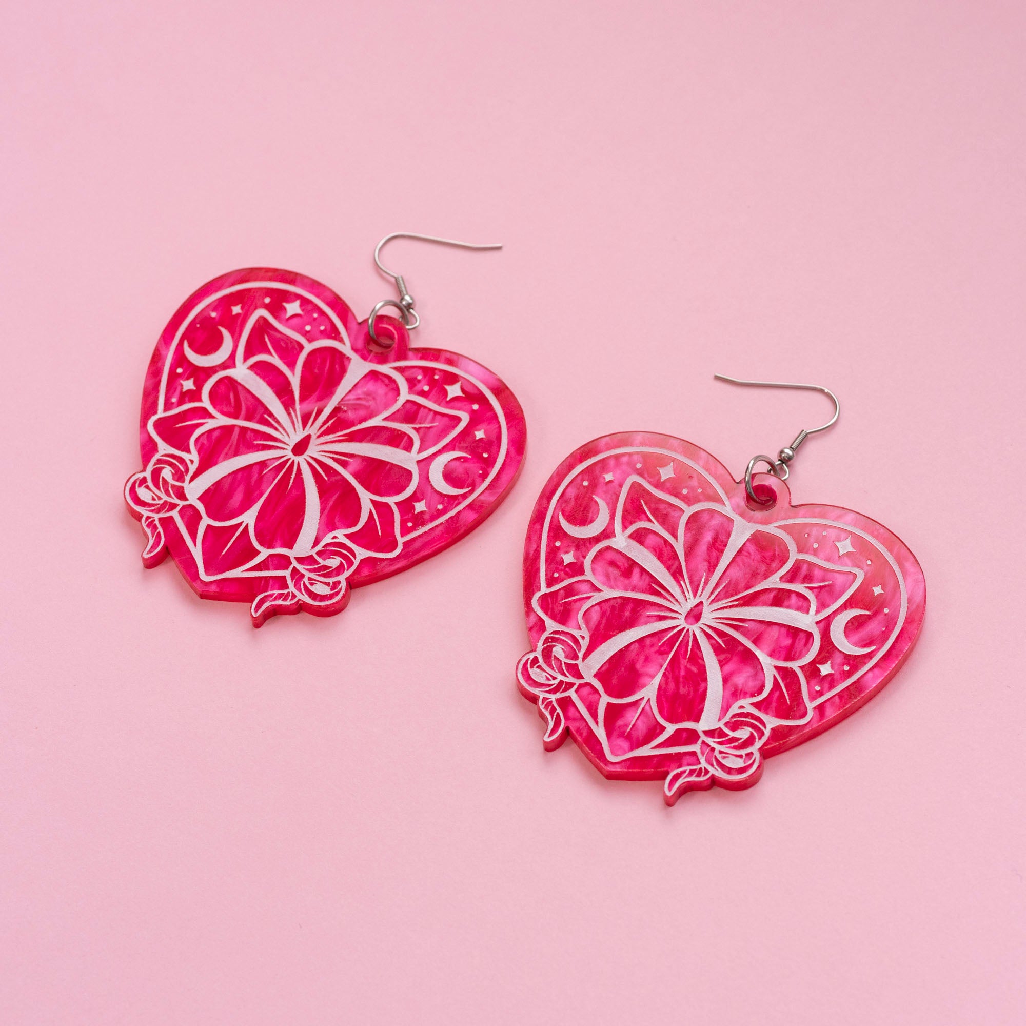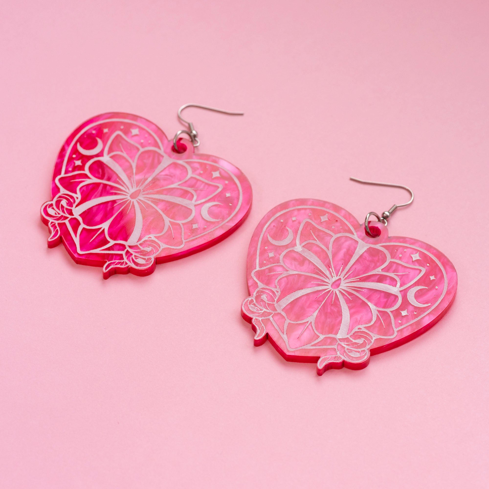 Wylde Flowers Moonflower Acrylic Earrings - Hot Pink