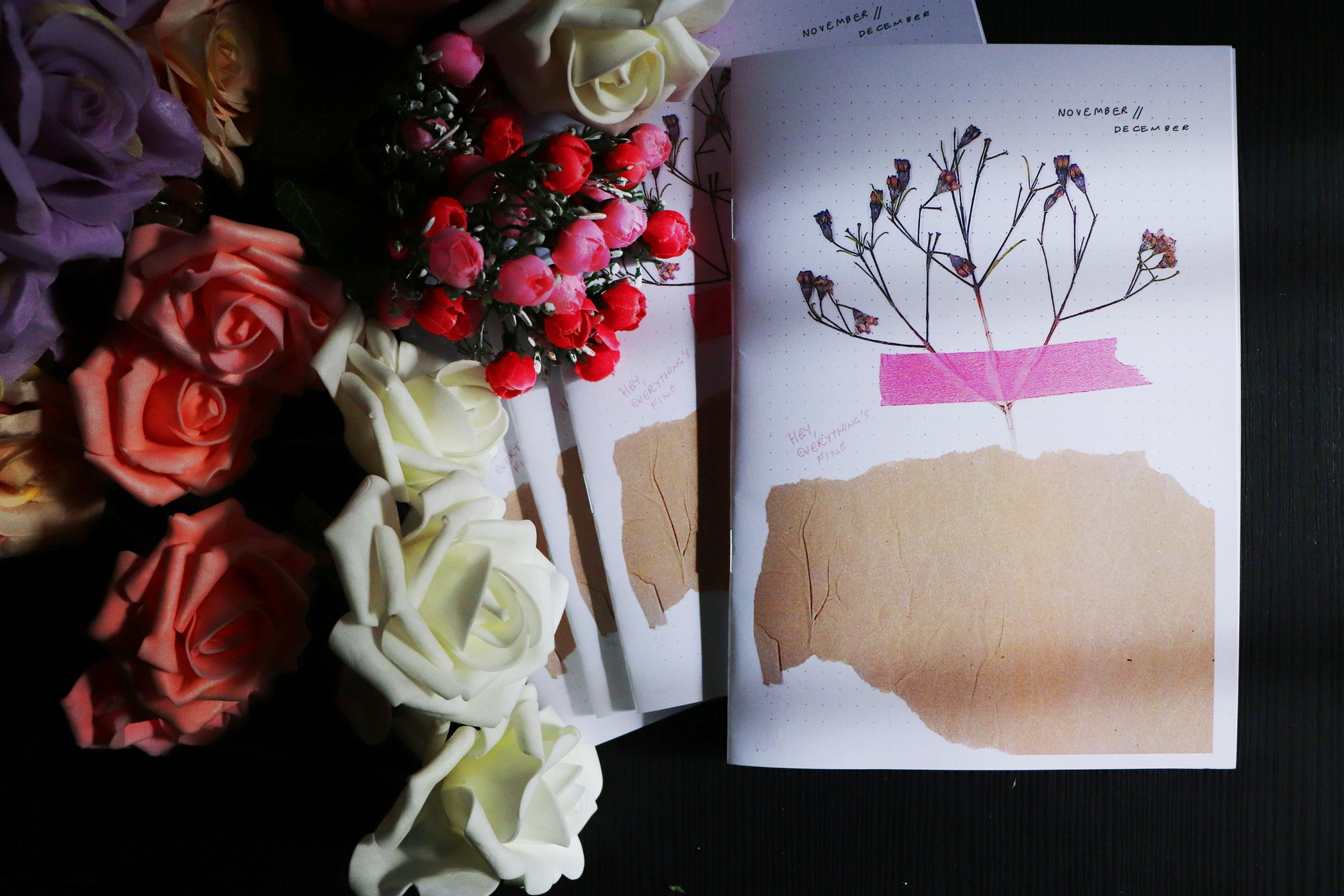 NOVEMBER // DECEMBER is an 8 page zine featuring scanned pages from my journal during a period of mania. An honest recollection of mental illness, relationships, and self-doubt. Content warning: mentions of depression/mental illness, medication, swearing. Printed at Officeworks on 170gsm silk paper. Hand folded and stapled. Glossy finish.