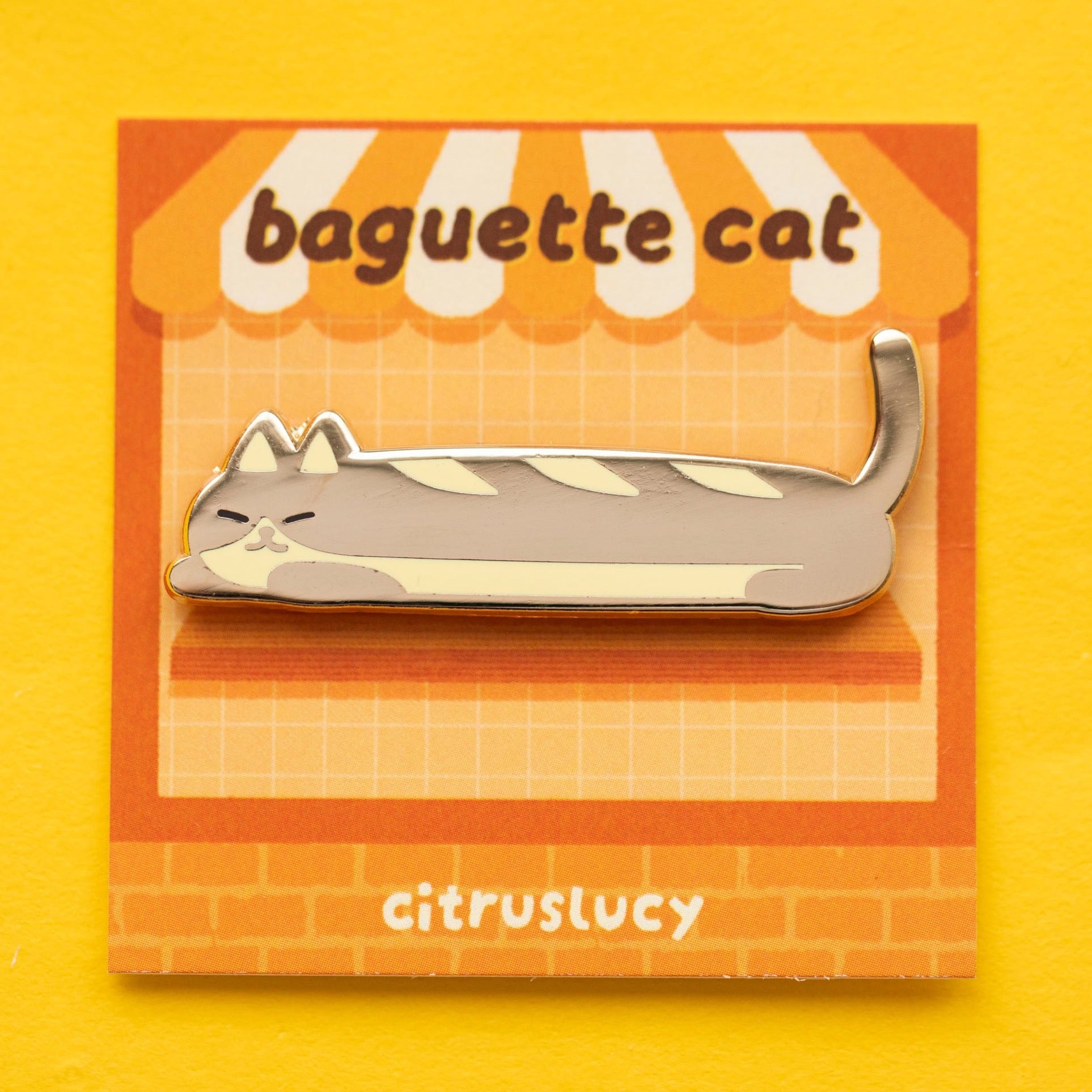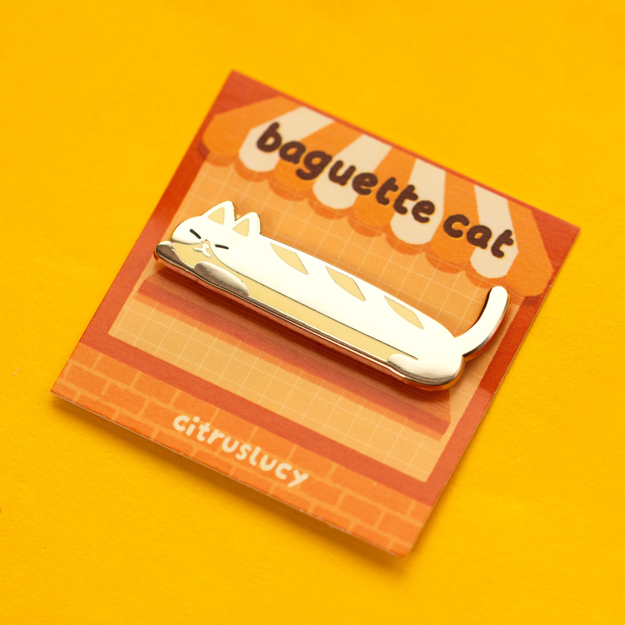 Nya nya nya. Loaf around with this very good baguette cat enamel pin. Yummy.