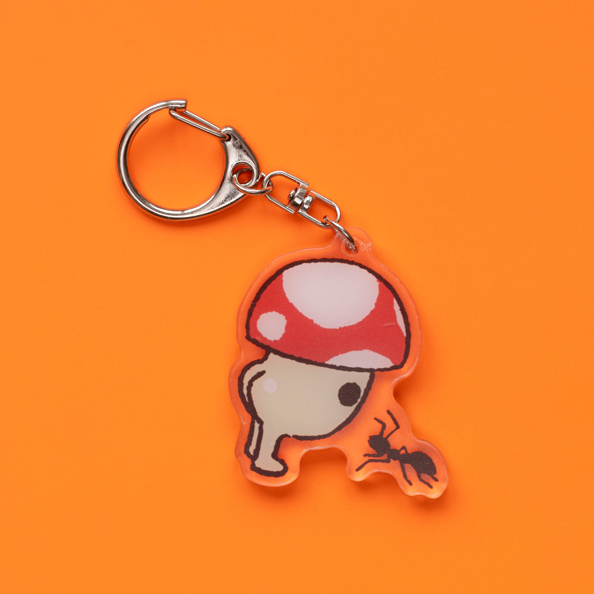 The Amanita and his friendly ant companion! High quality acrylic charms of original designs. 2-3" diameter sizes each (varies by design) so you can see all the finer details, and each comes with a lobster claw keychain to ensure an easy clasp.(Please note: protective plastic sheeting come on each item on the flat side, and can be removed or left on to the purchaser's desire!)