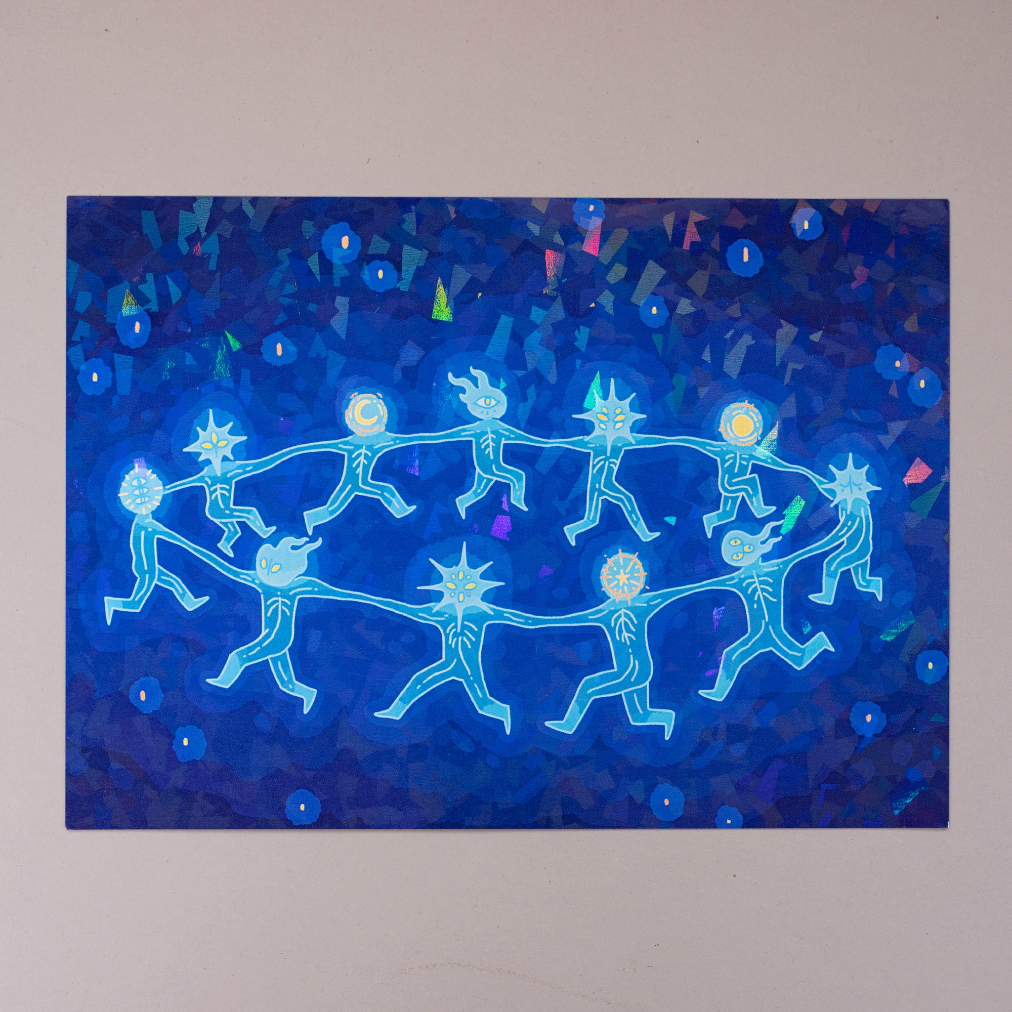 My illustration for Angeltober 2022, for the prompt "Dance."The print is 5 x 7 inches (12 x 17 cm) and holographic. It is printed on heavy cardstock.