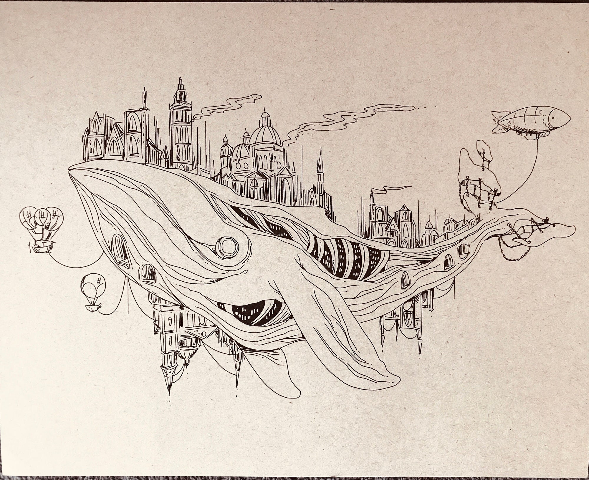 The floating city of Deadwale.The print is 8 x 10 inches (20 x 25 cm). It is printed on kraft paper.