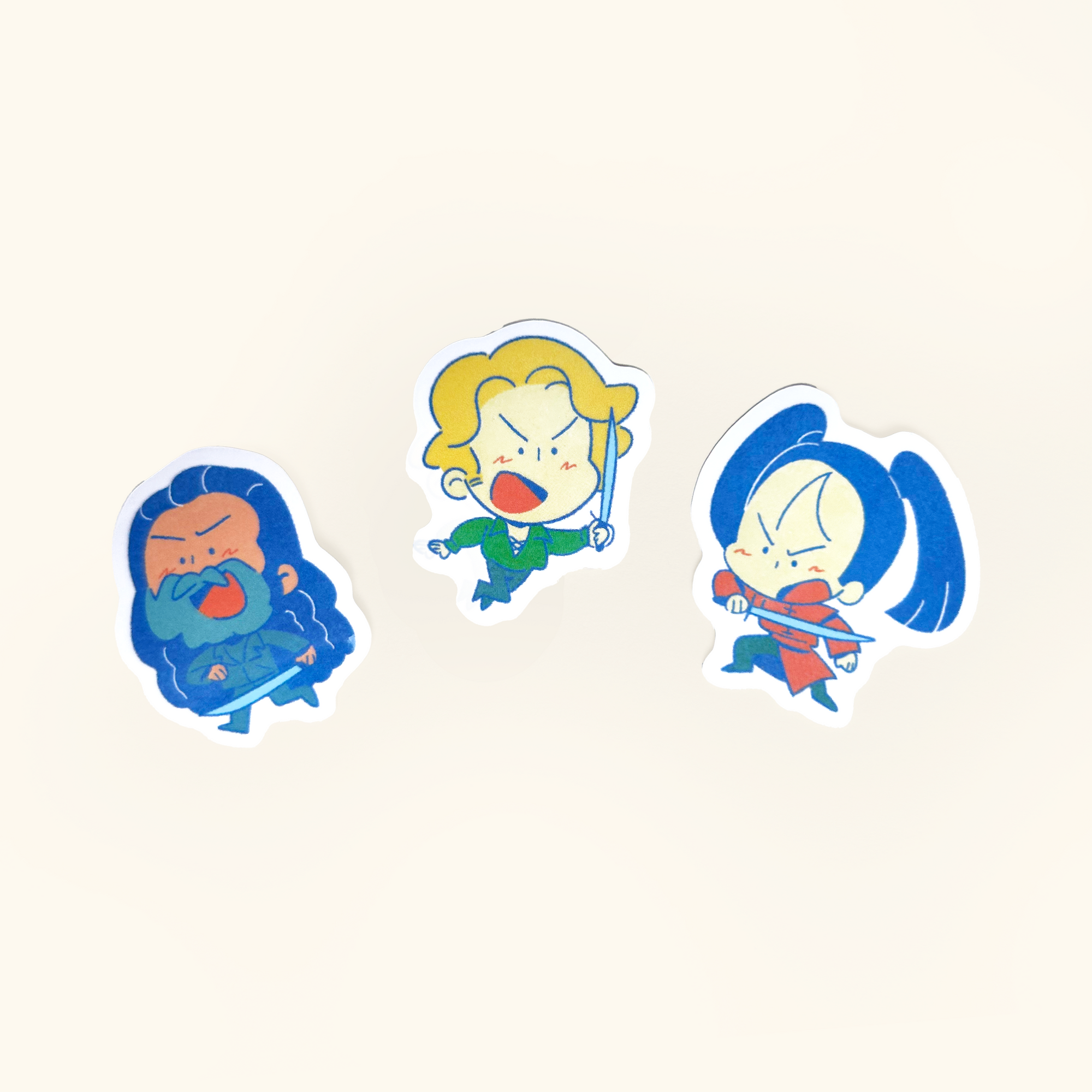 GIRL SQUAD! Ed, Stede & Zheng as 1.5" stickers.