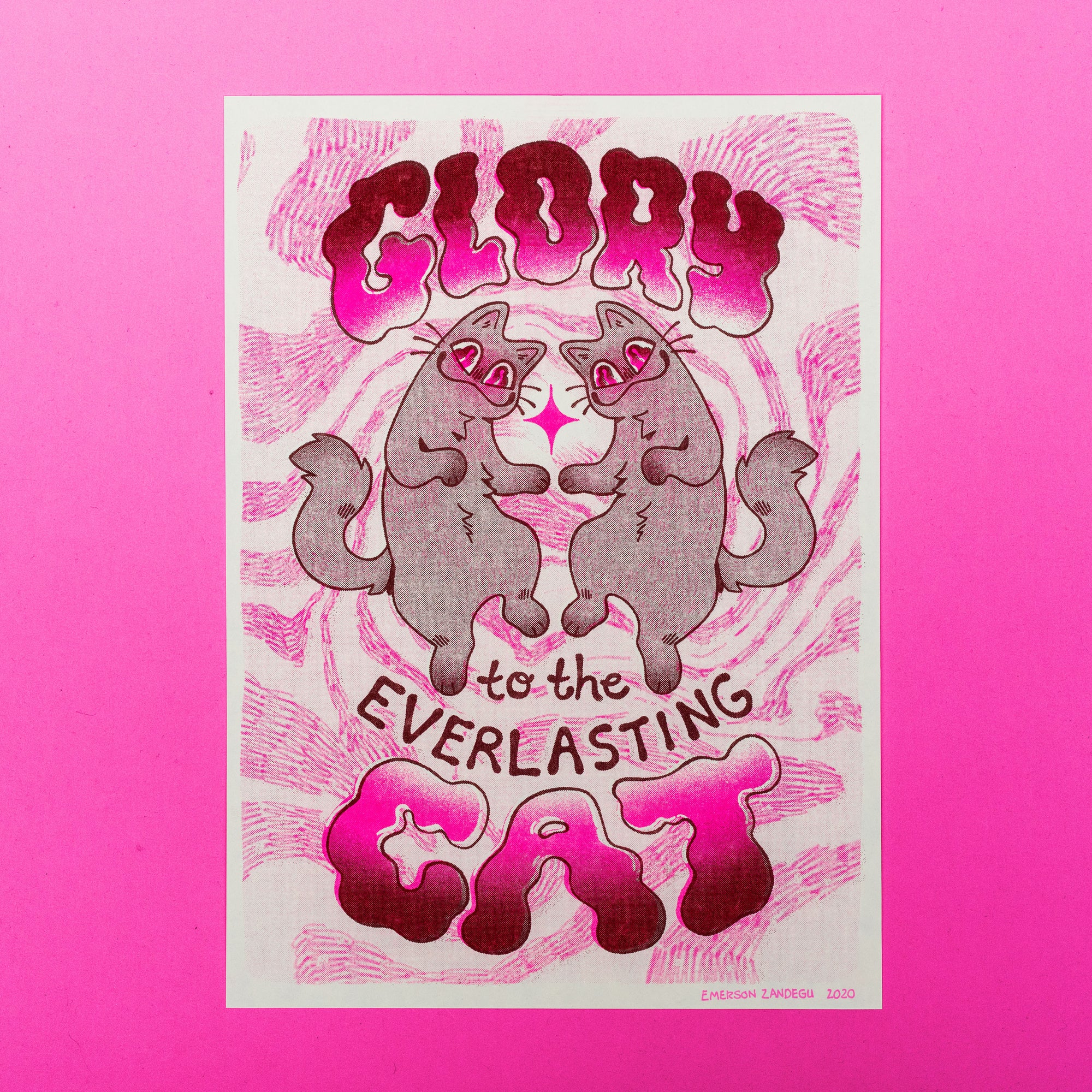 Printed in pink and brown risograph ink on recycled paper at Tree Paper Gallery in Melbourne, Australia.