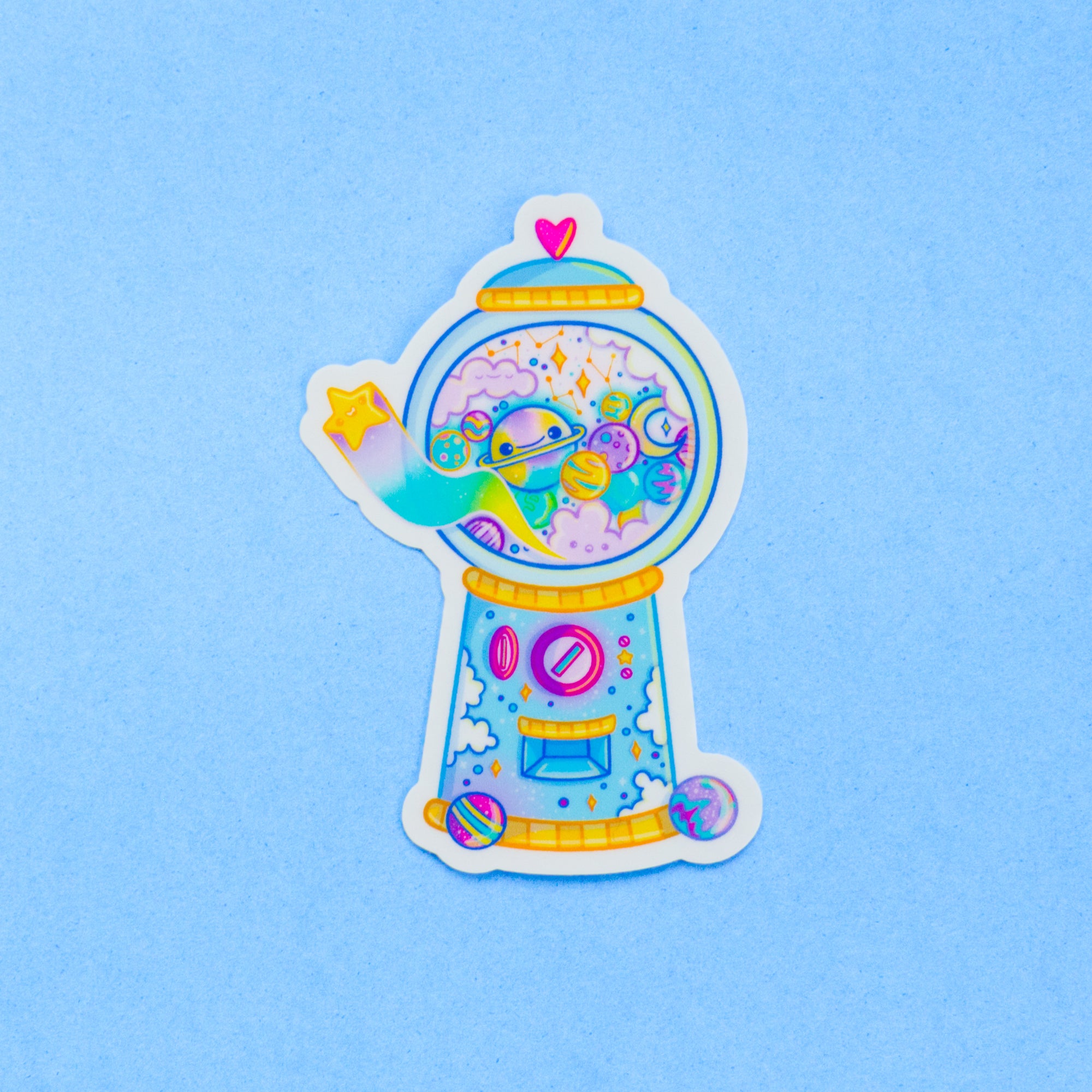 This gumball machine sticker is full of intergalactic fun. You can stick it to your water bottle, laptop, phone case — just about anything you want!
