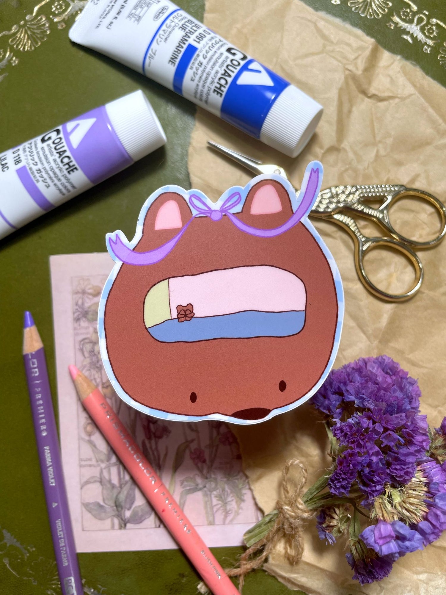 I have a sad tiny bear sitting in the corner of my brain... Printed on high quality vinyl with a smooth satin finish. Water proof, UV resistant and dishwasher safe!